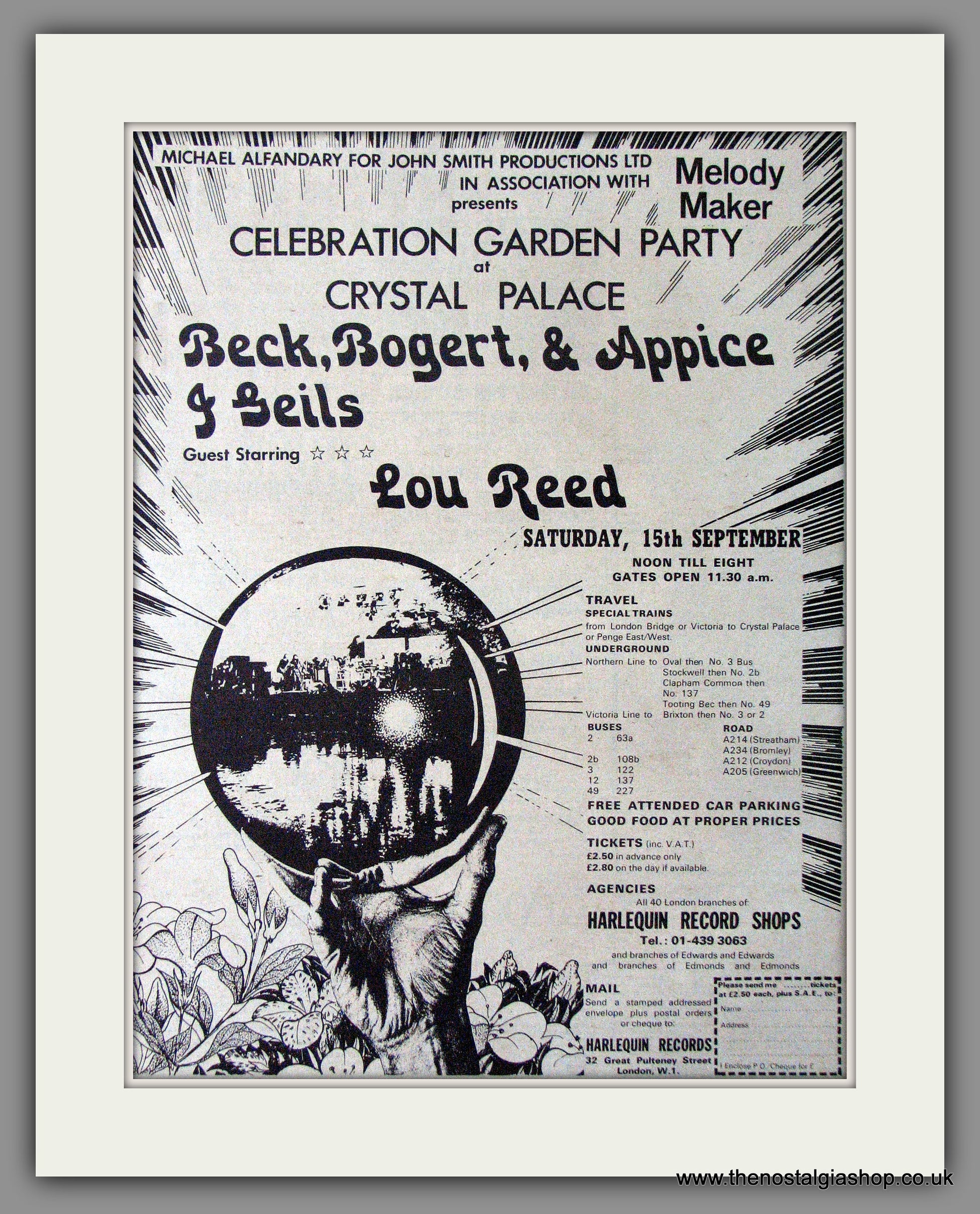 Lou Reed, Crystal Palace Garden Party. Vintage Advert 1973 (ref AD11344)