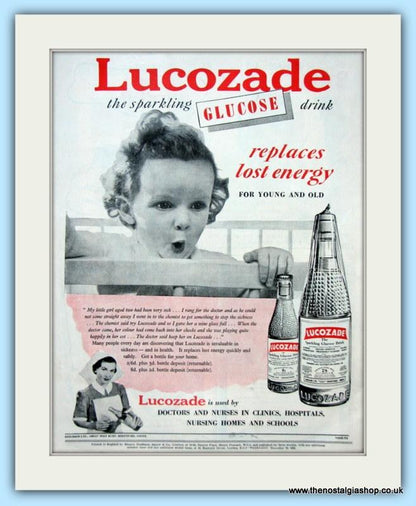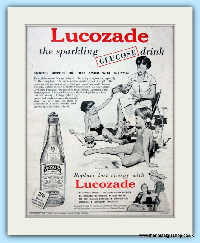 Lucozade The sparkling glucose drink.Set of 2 Classic original adverts 1951 and 1952, Price is for both ads. Each is presented in cream bevel cut mount with backing card and clear bag. Each is ready to fit in 14 x 11 inch frame. Want them framing? If so, buy this then go to Frames Available Category. Click to buy on the suitable frame(s) and we will do the rest. All our adverts, unless clearly stated are Originals from the date shown They make excellent pieces of wall art and stunning gifts. Many are rare and hard to find and once sold, may not be replaced. Remember you are buying a piece of history. Website watermark is not on original.