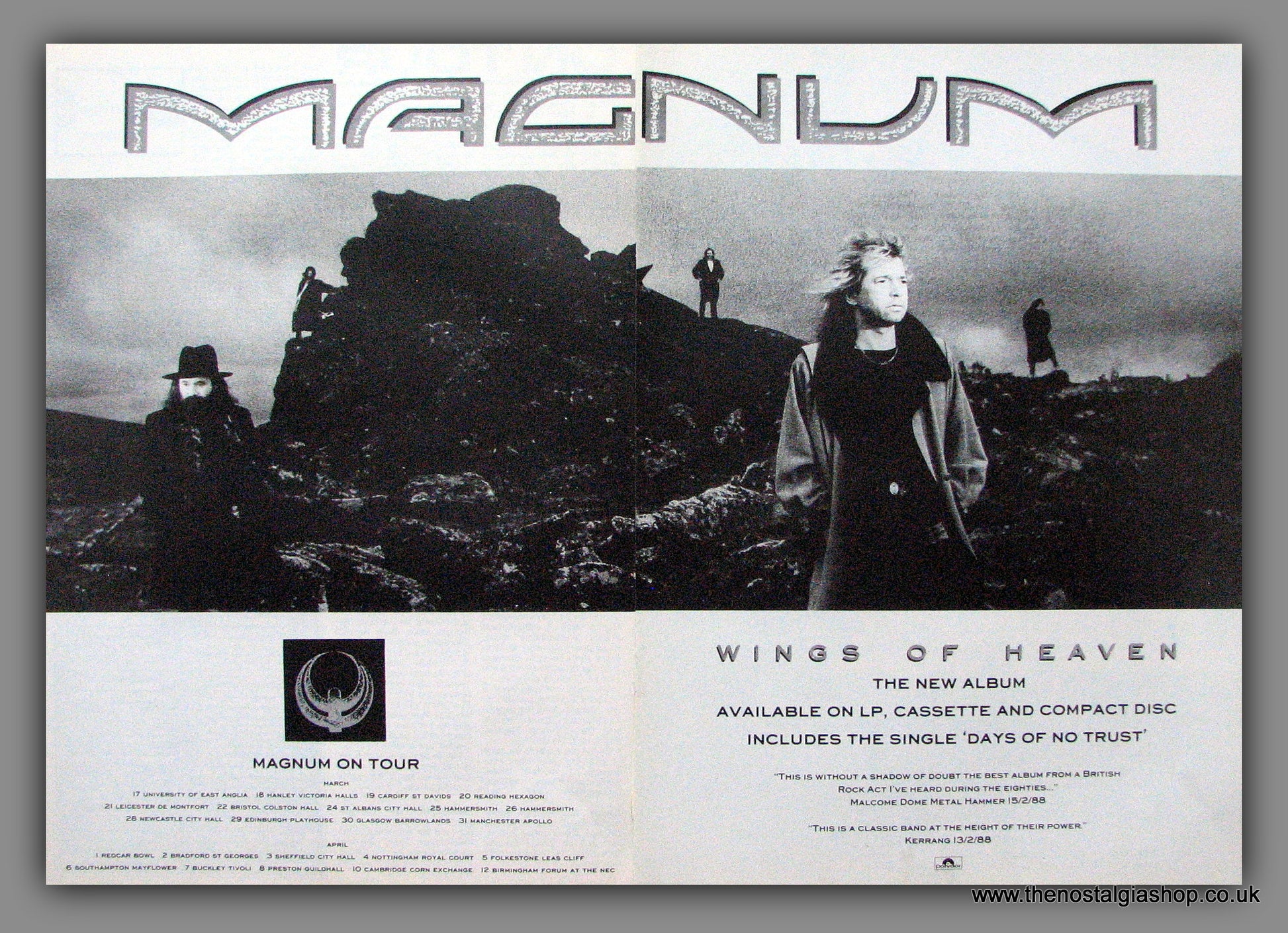 Magnum. Days Of No Trust. Large Classic Original advert 1988. Advert is approx A3 in Size and Is In 2 Halves and Sold UNMOUNTED. All our adverts, unless clearly stated are Originals from the date shown. They make excellent pieces of wall art and stunning gifts. Many are rare and hard to find and once sold, may not be replaced. Remember you are buying a piece of history. Website watermark is not on original. Bob Catley, Tony Clarkin, Mark Stanway, Dennis Ward, Lee Morris, Kex Gorin, Gary James, Bob Doyle. Colin Wally Lowe.