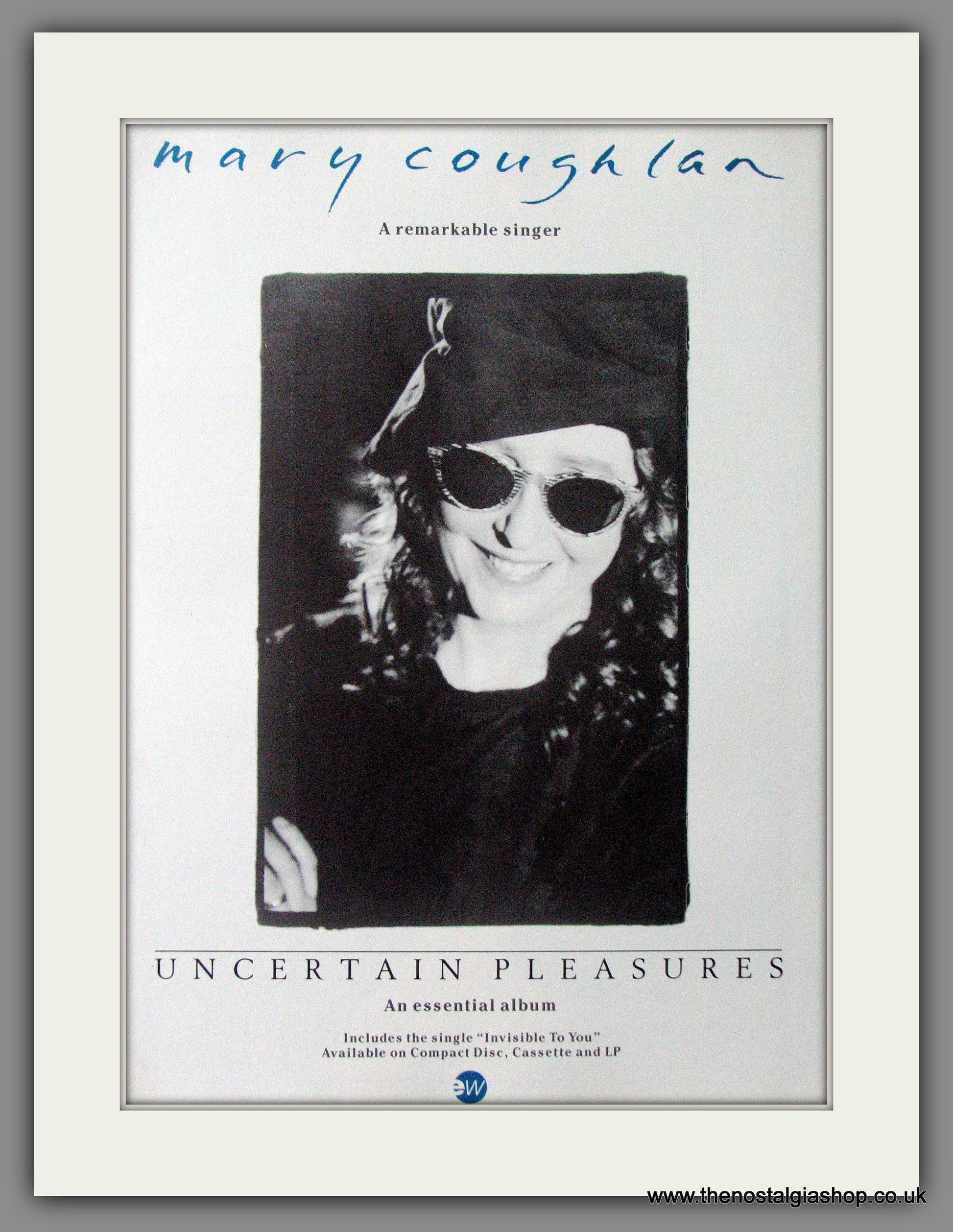 Mary Coughlan. Uncertain Pleasures. Classic Original advert 1990. Presented and Supplied in cream bevel cut mount with backing card and clear bag. Ready to fit in 14 x 11 inch frame. Want it framing? If so, buy this then go to Frames Available Category. Click to buy on the suitable frame and we will do the rest. All our adverts, unless clearly stated are Originals from the date shown. They make excellent pieces of wall art and stunning gifts. Many are rare and hard to find and once sold, may not be replaced. Remember you are buying a piece of history. Website watermark is not on original.