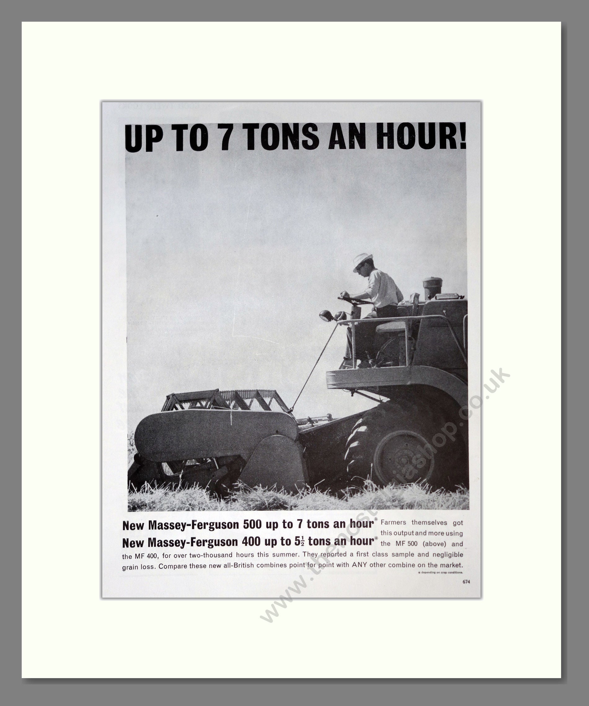 Massey Ferguson. Vintage Advert. This is a large classic original advert from 1961. Presented and supplied in a cream bevel cut mount with backing card and clear bag. Ready to fit in a 18 x 14 inches frame. The mounted advert will be posted via courier and well packed - protected with a sheet of hardboard to keep it rigid. Any questions or enquiries, please get in touch, we are here to help! All our adverts, unless clearly stated are originals from the date shown. They make excellent pieces of wall art and stunning gifts. Many are rare and hard to find and once sold, may not be replaced. Remember you are buying a piece of history. Website watermark is not on original.