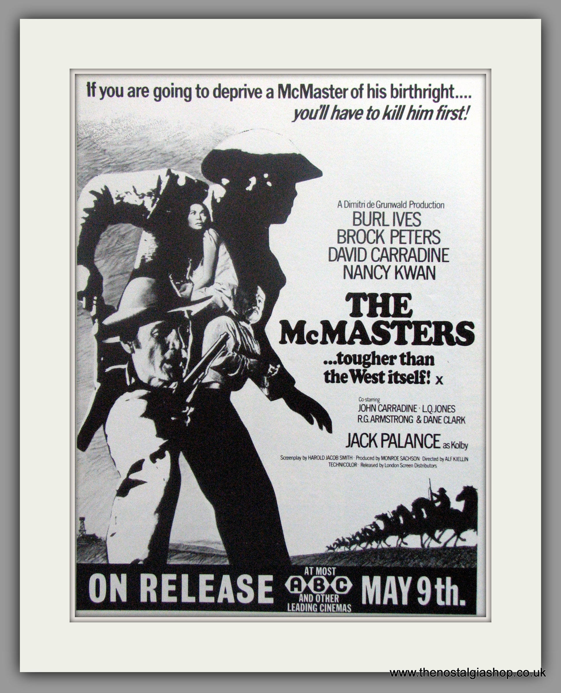 The McMasters-Burl Ives, Brock Peters, David Carradine, Nancy Kwan. Vintage Advert. Classic original advert 1971. Presented in cream bevel cut mount with backing card and display bag. Ready to fit in 14 x 11 inch frame. Want it framing? If so, buy this then go to Frames Available Category. Click to buy on the suitable frame and we will do the rest. All our adverts, unless clearly stated are Originals from the date shown. They make excellent pieces of wall art and stunning gifts. Many are rare and hard to find and once sold, may not be replaced. Remember you are buying a piece of history. Website watermark is not on original.