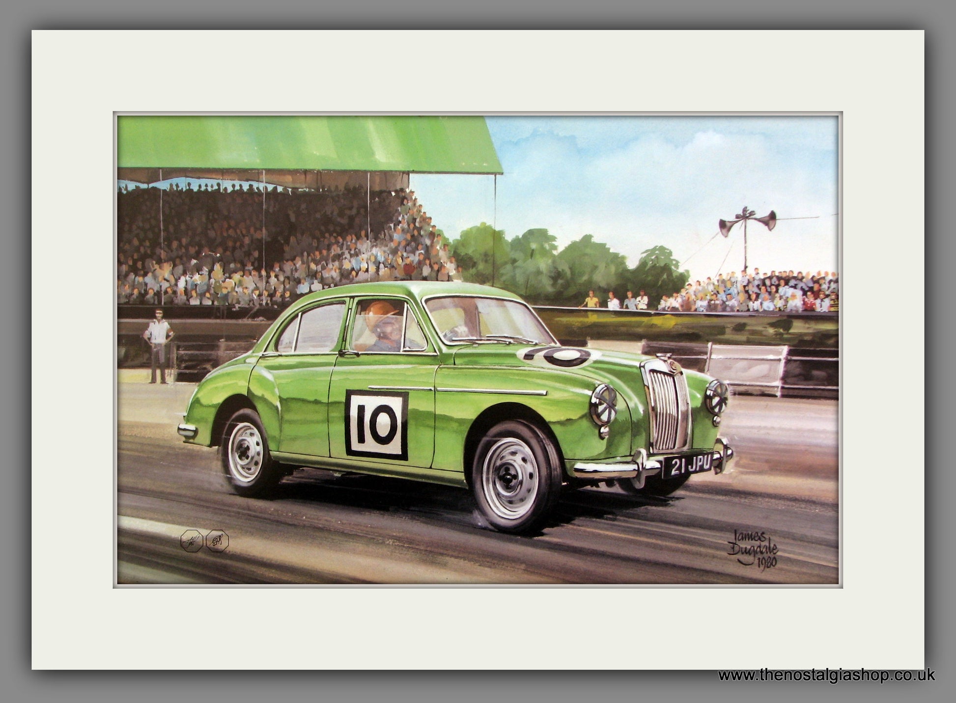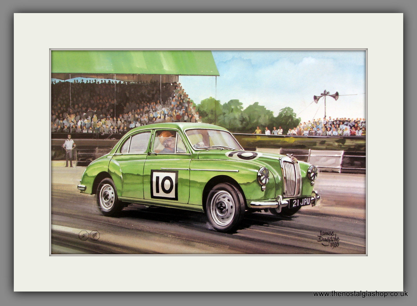 MG Magnette. Classic large car print from the 1980's. Artist is James Dugdale. Presented and Supplied in a Cream Bevel Cut Mount with backing board and Clear Bag, Size 20 x 16 Inches, Ready to drop straight into a Frame. We have a large range of MG prints available on the website. They make excellent pieces of wall art and stunning gifts. Website watermark is not on original. MG Prints. MG Art. MG Pictures.