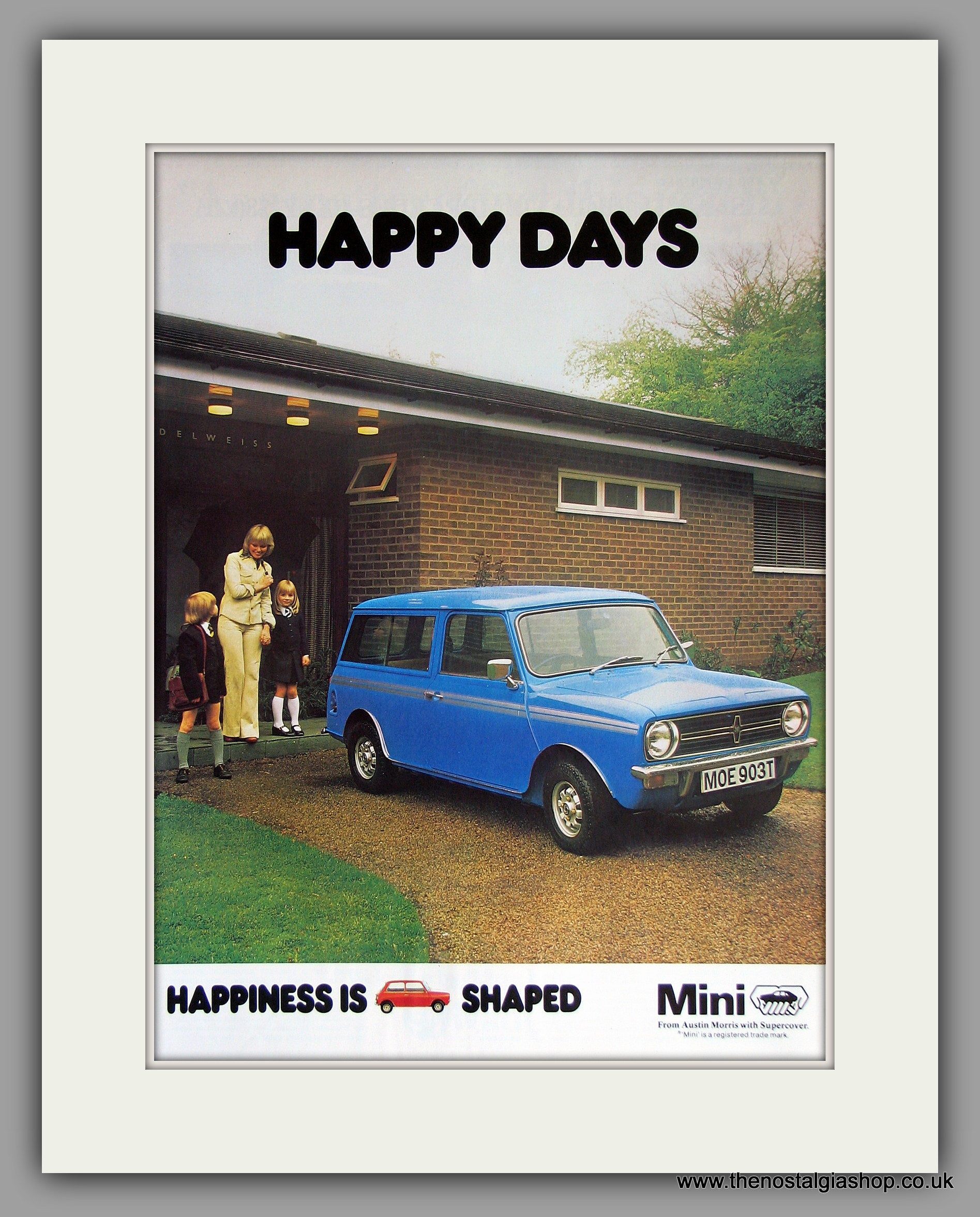 Mini. Happy Days. Vintage Advert. Classic original advert 1978. Presented in cream bevel cut mount, Size 14 x 11 inches with backing card and clear bag. Ready to frame. Want it framing? If so, buy this then go to Frames Available Category. Click to buy on the suitable frame and we will do the rest. All our adverts, unless clearly stated are Originals from the date shown They make excellent pieces of wall art and stunning gifts. Many are rare and hard to find and once sold, may not be replaced. Remember you are buying a piece of history. Website watermark is not on original.