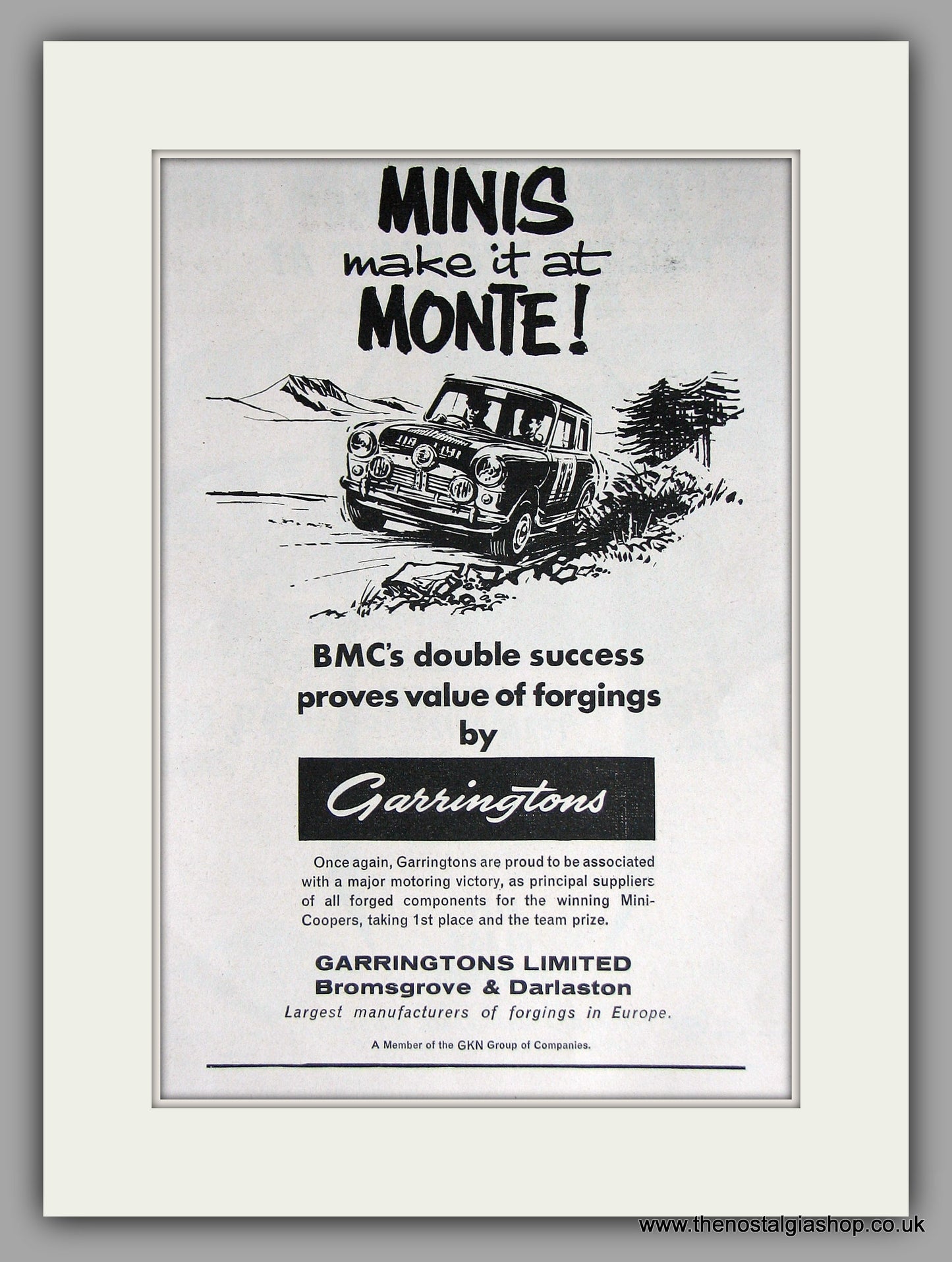 Mini Coopers Make it at Monte. 1964 Original Vintage Advert (ref AD7775)