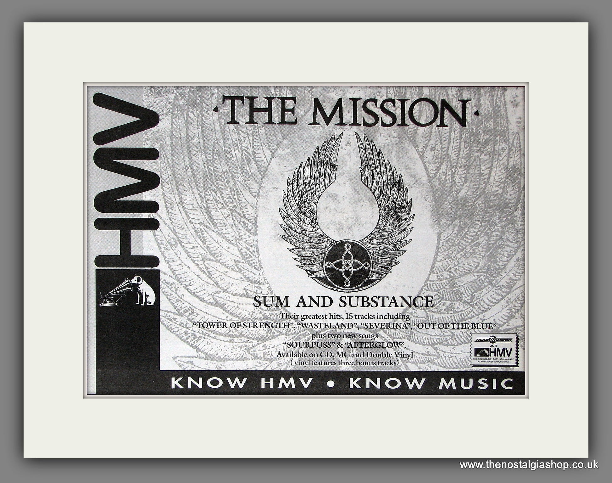 The Mission Sum And Substance. Classic Original advert 1994. Presented and supplied in a cream bevel cut mount with backing card and clear bag. Ready to fit in 14 x 11 inch frame. The mounted advert will be posted via courier and well packed - protected with a sheet of hardboard to keep it rigid. Any questions or inquiries, please get in touch, we are here to help! All our adverts, unless clearly stated are Originals from the date shown. They make excellent pieces of wall art and stunning gifts. Many are rare and hard to find and once sold, may not be replaced. Remember you are buying a piece of history. Website watermark is not on original.