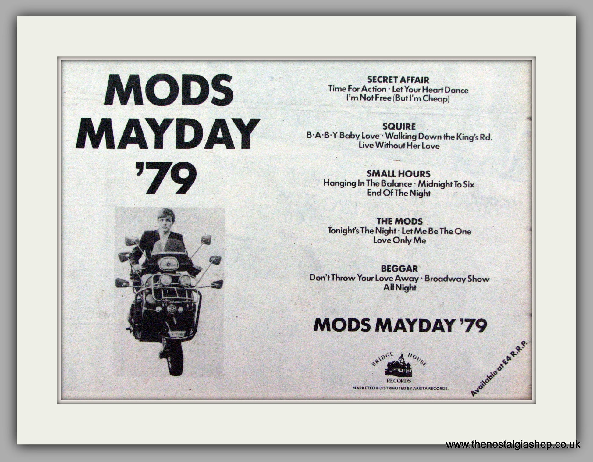 Mods Mayday '79. Vintage Advert. Classic original advert 1979. Presented in cream bevel cut mount with backing card and display bag. Ready to fit in 14 x 11 inch frame. Want it framing? If so, buy this then go to Frames Available Category. Click to buy on the suitable frame and we will do the rest. All our adverts, unless clearly stated are Originals from the date shown. They make excellent pieces of wall art and stunning gifts. Many are rare and hard to find and once sold, may not be replaced. Remember you are buying a piece of history. Website watermark is not on original.