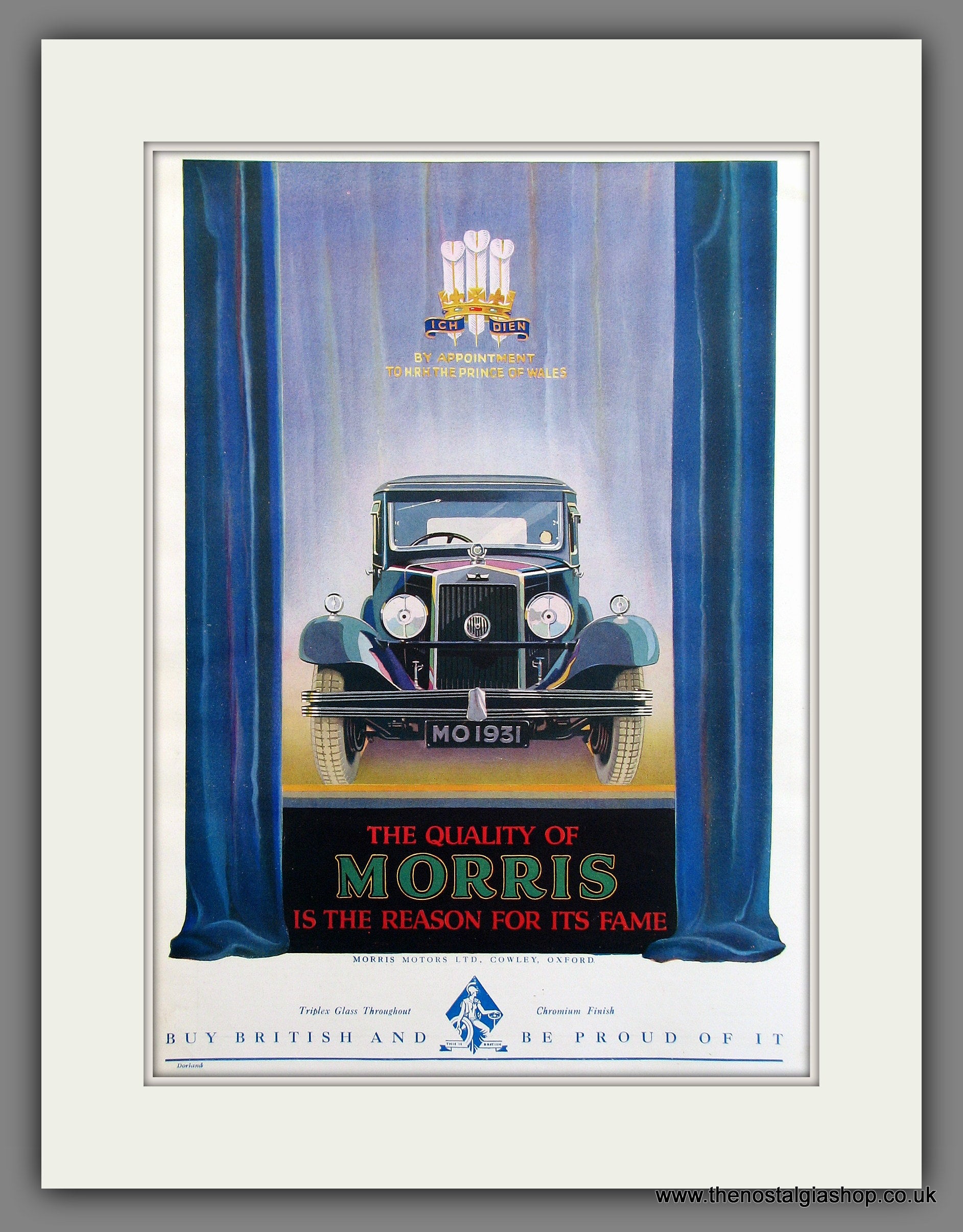 Morris. Original Vintage Advert 1931. Presented and Supplied in a cream bevel cut mount with backing card and clear bag. Ready to fit in 18 x 14 inch frame. All our adverts, unless clearly stated are Originals from the date shown They make excellent pieces of wall art and stunning gifts. Many are rare and hard to find and once sold, may not be replaced. Remember you are buying a piece of history. Website watermark is not on original.