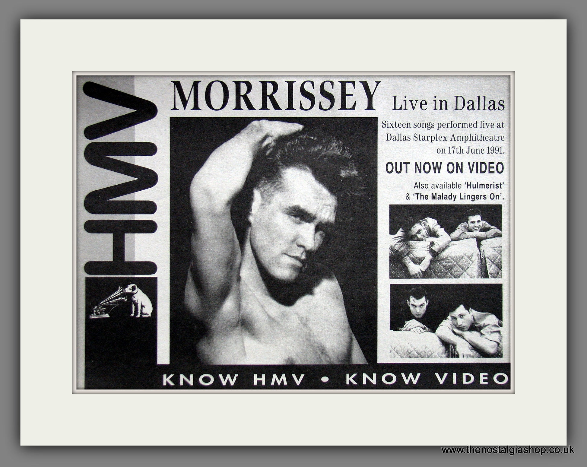 Morrissey. Live In Dallas. The Smiths. Classic original advert 1993. It is presented in cream bevel cut mount with backing card. Ready to fit in 14 x 11 inch frame. Want it framing? If so, buy these then go to Frames Available Category. Click to buy on the suitable frame and we will do the rest. All our adverts, unless clearly stated are Originals from the date shown. They make excellent pieces of wall art and stunning gifts. Many are rare and hard to find and once sold, may not be replaced. Remember you are buying a piece of history. Website watermark is not on original.