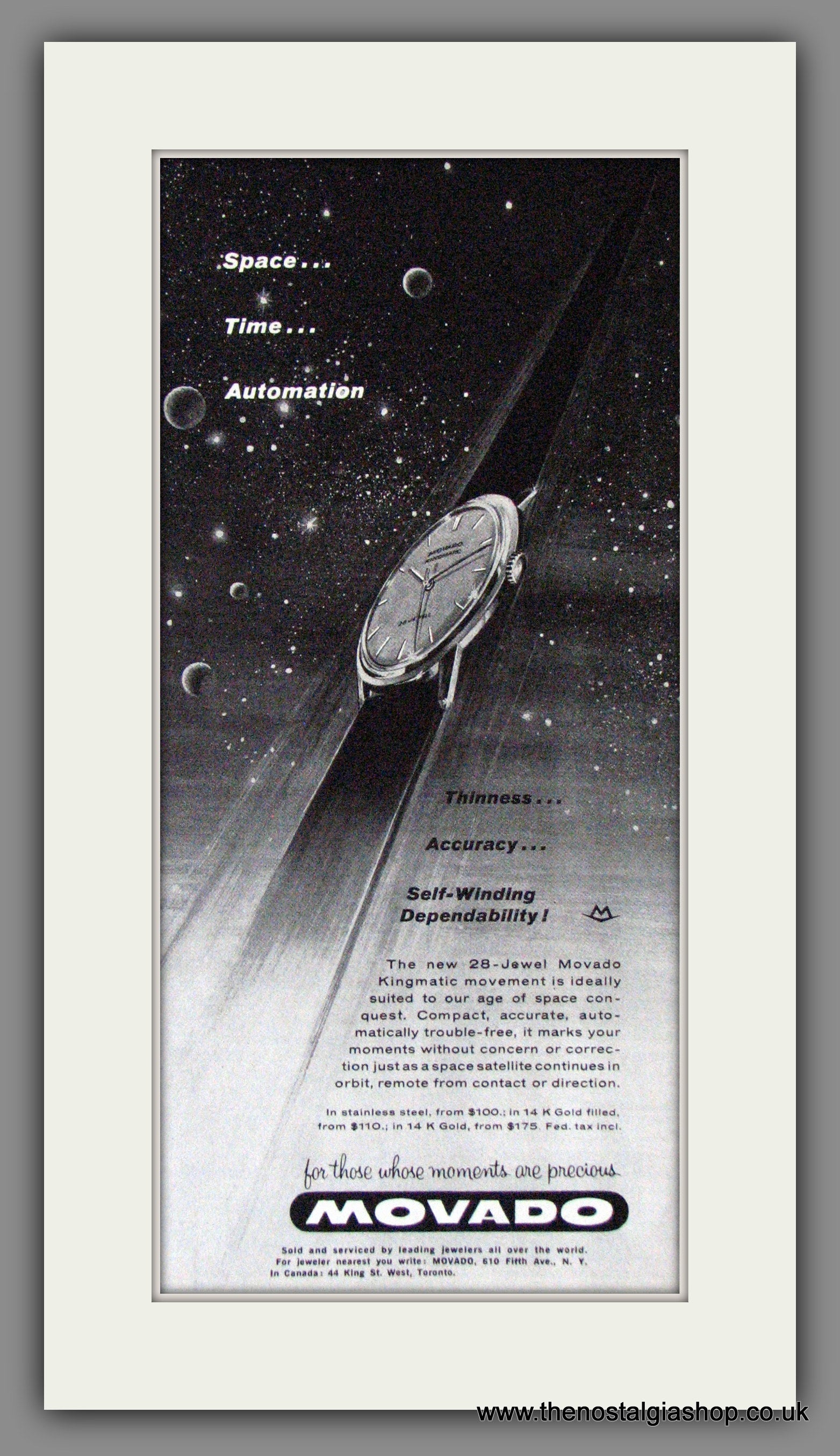 Movado Kingmatic Watch. Classic Original Advert 1959. Presented and supplied in a cream bevel cut mount with backing card and clear bag. Ready to fit in 14.5 x 7 inch frame. Want it framing? If so, buy this then go to Frames Available Category. Click to buy on the suitable frame and we will do the rest. All our adverts, unless clearly stated are Originals from the date shown. They make excellent pieces of wall art and stunning gifts. Many are rare and hard to find and once sold, may not be replaced. Remember you are buying a piece of history. Website watermark is not on original.
