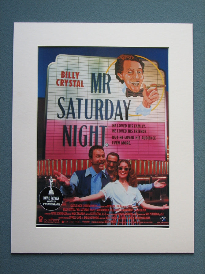 Mr Saturday Night Billy Crystal, Julie Warner, Helen Hunt. Classic original advert 1993. Professionally sealed and presented in cream bevel cut mount with backing card. Ready to fit in 14 x 11 inch frame. Want it framing? buy this then go to Frames Available Catagory. Click to buy on the suitable frame and we will do the rest. All our adverts, unless clearly stated are Originals from the date shown They make excellent pieces of wall art and stunning gifts. Many are rare and hard to find and once sold, may not be replaced. Remember you are buying a piece of history