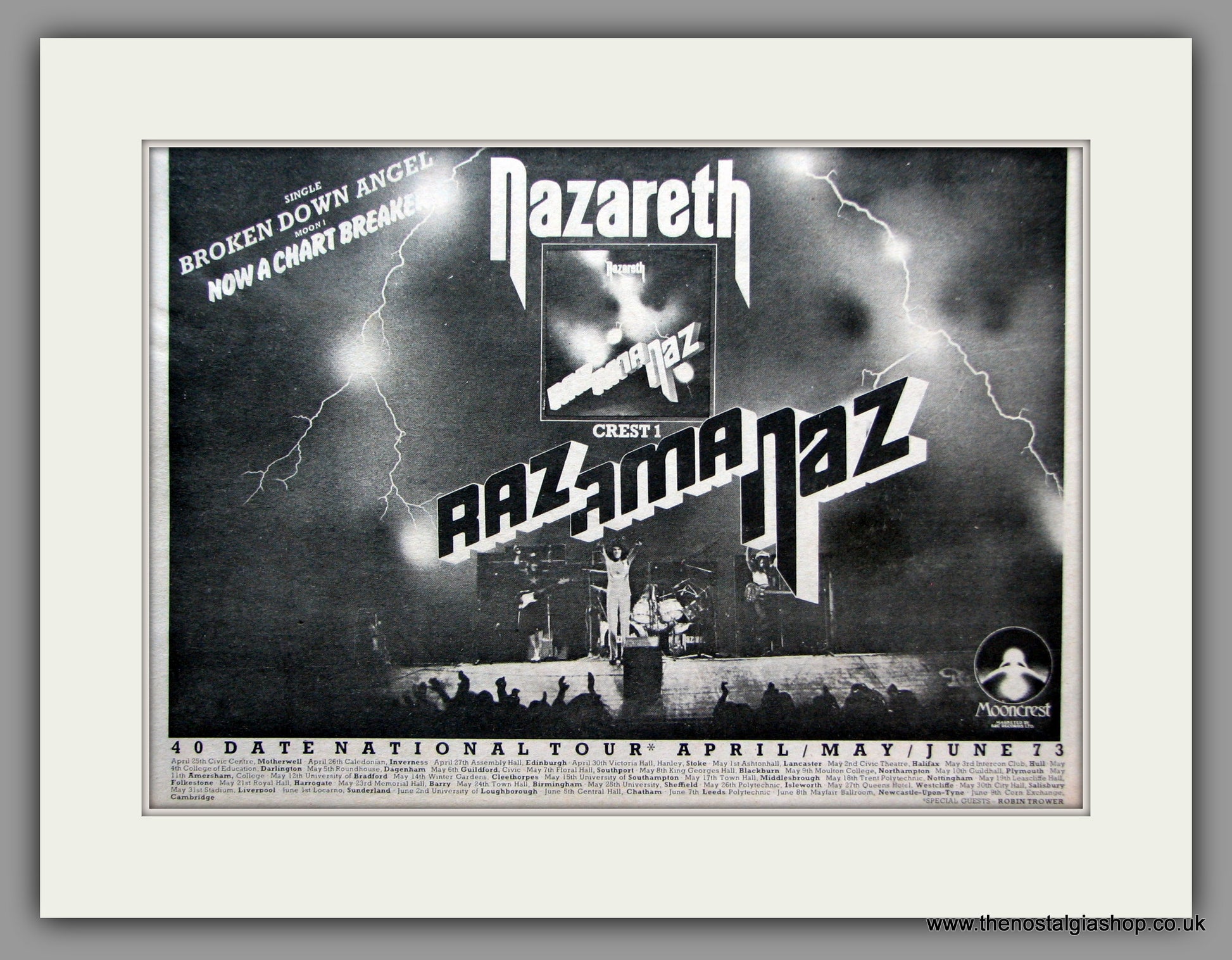 Nazareth. Razamanaz. Classic Original advert 1970. Presented in cream bevel cut mount with backing card and clear bag. Ready to fit in 14 x 11 inch frame. Want it framing? If so, buy this then go to Frames Available Category. Click to buy on the suitable frame and we will do the rest. All our adverts, unless clearly stated are Originals from the date shown. They make excellent pieces of wall art and stunning gifts. Many are rare and hard to find and once sold, may not be replaced. Remember you are buying a piece of history. Website watermark is not on original.
