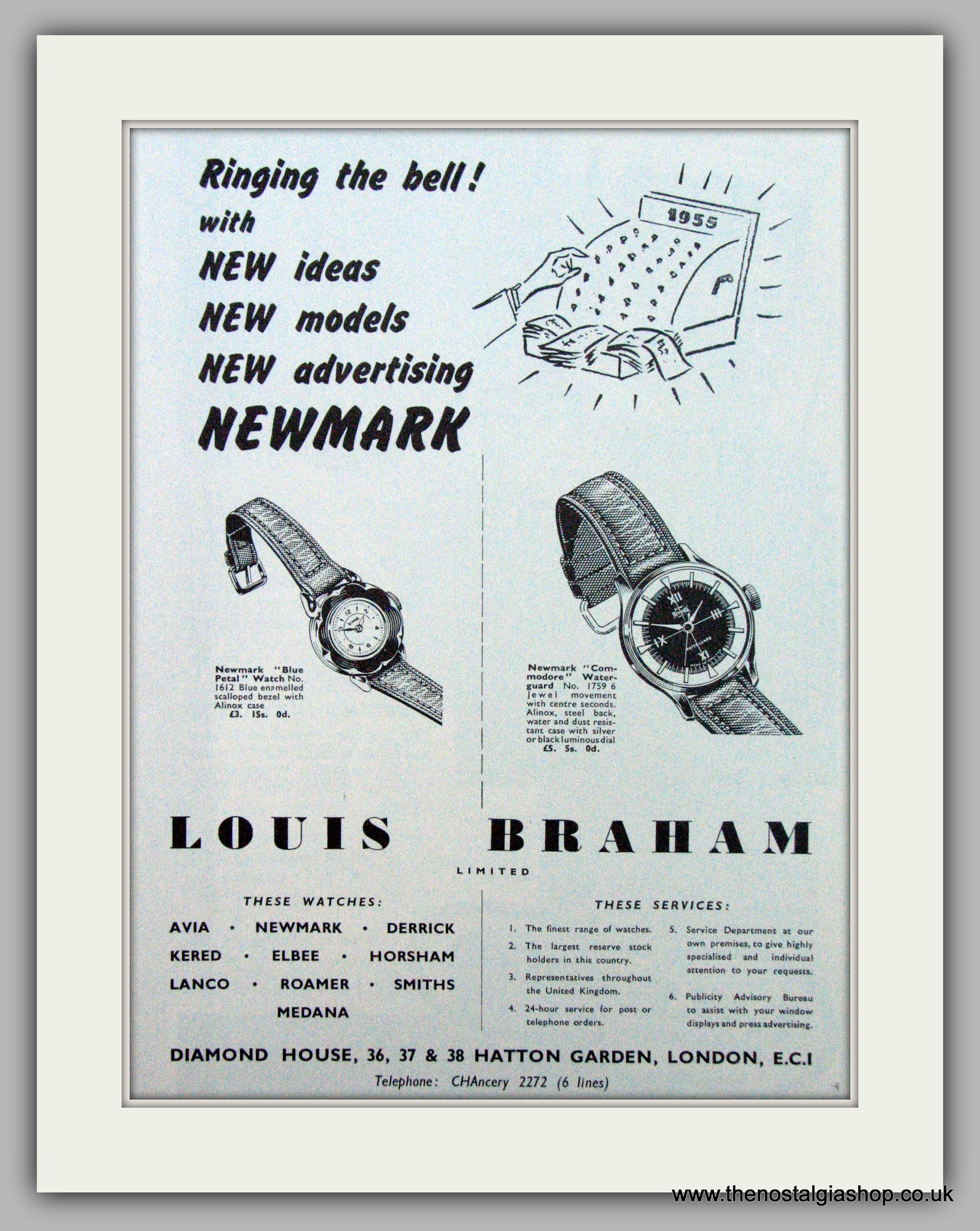 Newmark Watches Louis Braham. Original Advert 1955 (ref AD7191)