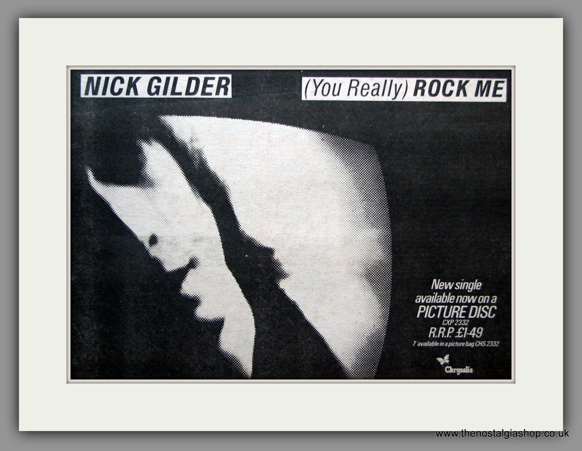 Nick Gilder. You Really Rock Me. Classic Original advert 1979. Presented in cream bevel cut mount with backing card and clear bag. Ready to fit in 14 x 11 inch frame. Want it framing? If so, buy this then go to Frames Available Category. Click to buy on the suitable frame and we will do the rest. All our adverts, unless clearly stated are Originals from the date shown. They make excellent pieces of wall art and stunning gifts. Many are rare and hard to find and once sold, may not be replaced. Remember you are buying a piece of history. Website watermark is not on original.