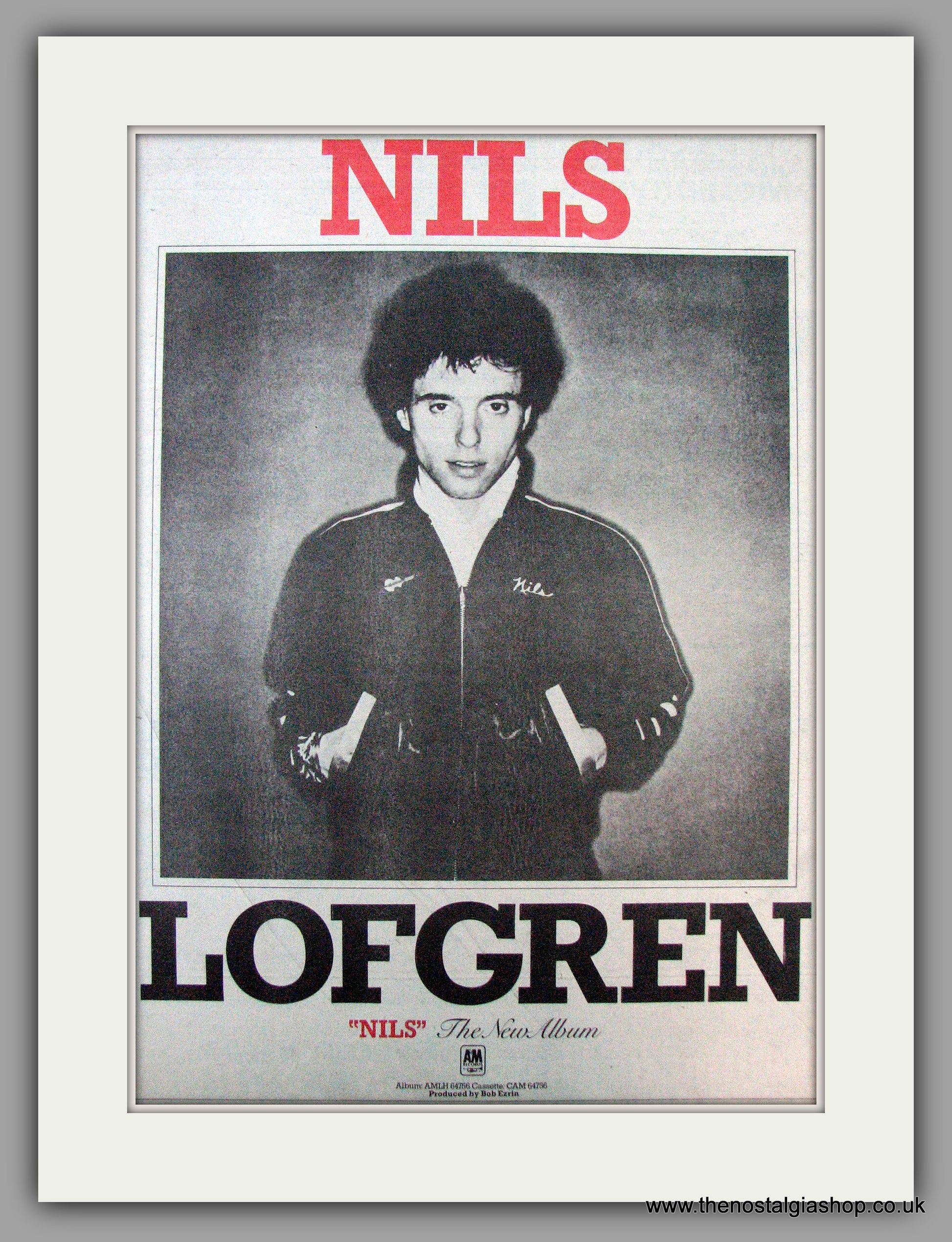 Nils Lofgren. Nils.. Vintage Advert 1979 (ref AD9673). Presented and supplied in a cream bevel cut mount with backing card and clear bag. Ready to fit in a 20x16 inch frame. The mounted advert will be posted via courier and well packed - protected with a sheet of hardboard to keep it rigid. Any questions or enquiries, please get in touch, we are here to help! All our adverts, unless clearly stated are originals from the date shown. They make excellent pieces of wall art and stunning gifts. Many are rare and hard to find and once sold, may not be replaced. Remember you are buying a piece of history. Website watermark is not on original.