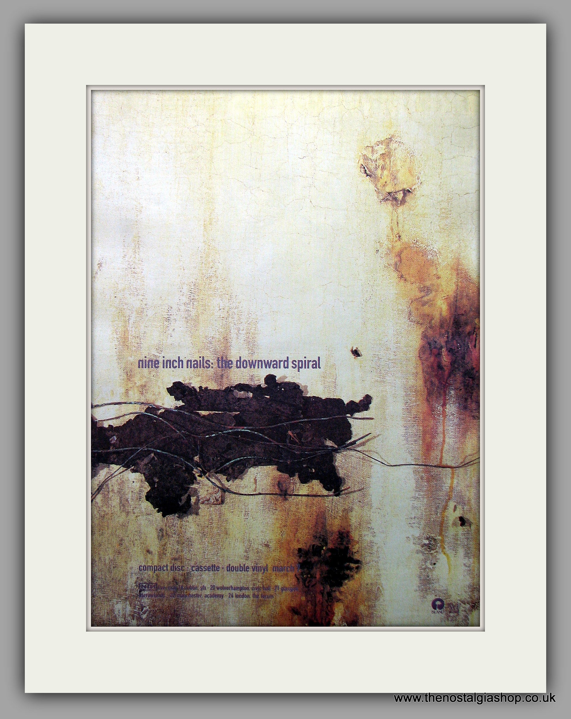 Nine Inch Nails - The Downward Spiral. Original Vintage Advert 1994 (ref AD10931). Presented and supplied in a cream bevel cut mount with backing card and clear bag. Ready to fit in a 20x16 inch frame. The mounted advert will be posted via courier and well packed - protected with a sheet of hardboard to keep it rigid. Any questions or enquiries, please get in touch, we are here to help! All our adverts, unless clearly stated are originals from the date shown. They make excellent pieces of wall art and stunning gifts. Many are rare and hard to find and once sold, may not be replaced. Remember you are buying a piece of history. Website watermark is not on original.