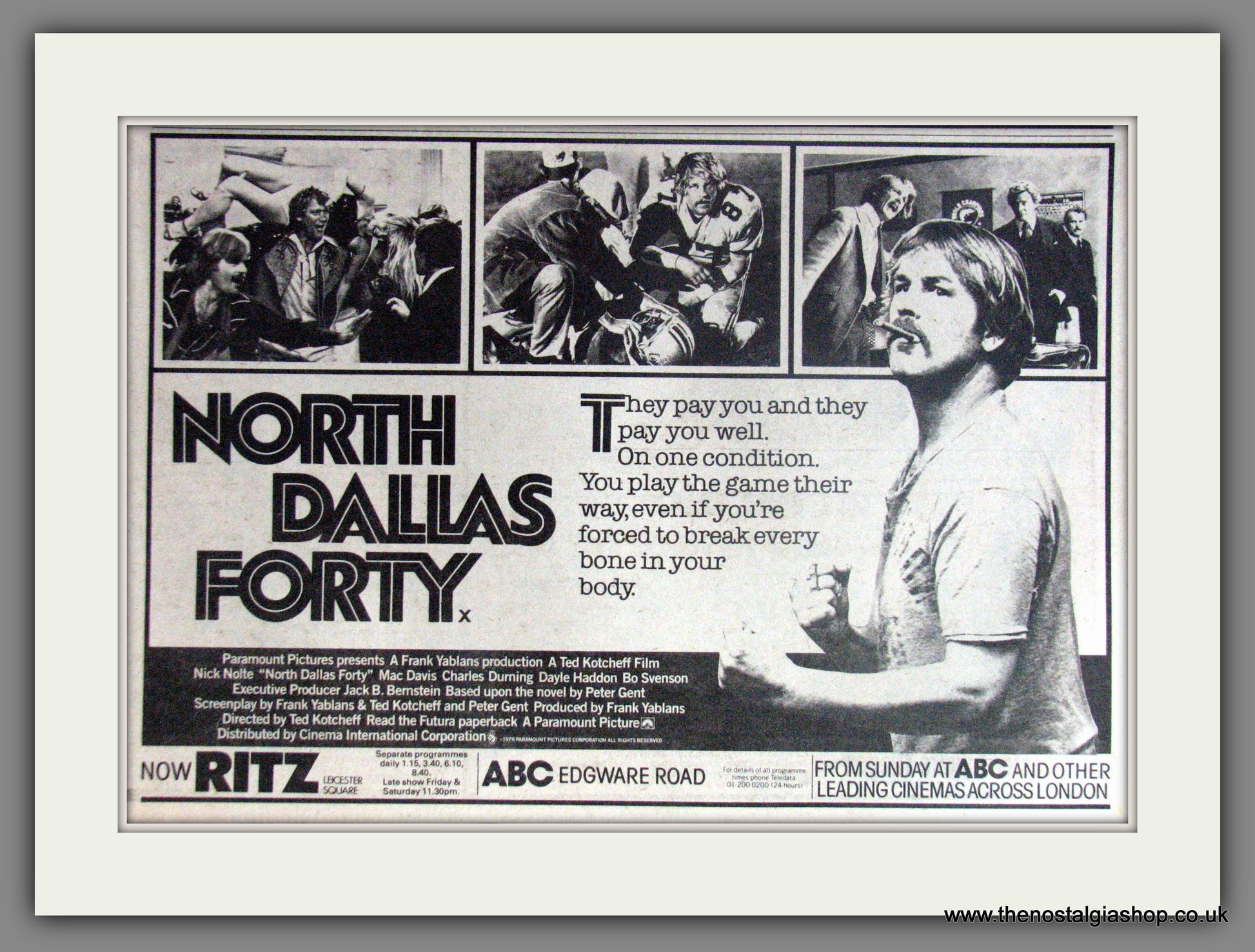 North Dallas Forty-They pay you and they pay you well. Vintage Advert. Classic original advert 1980. Presented in cream bevel cut mount with backing card and display bag. Ready to fit in 14 x 11 inch frame. Want it framing? If so, buy this then go to Frames Available Category. Click to buy on the suitable frame and we will do the rest. All our adverts, unless clearly stated are Originals from the date shown. They make excellent pieces of wall art and stunning gifts. Many are rare and hard to find and once sold, may not be replaced. Remember you are buying a piece of history. Website watermark is not on original.