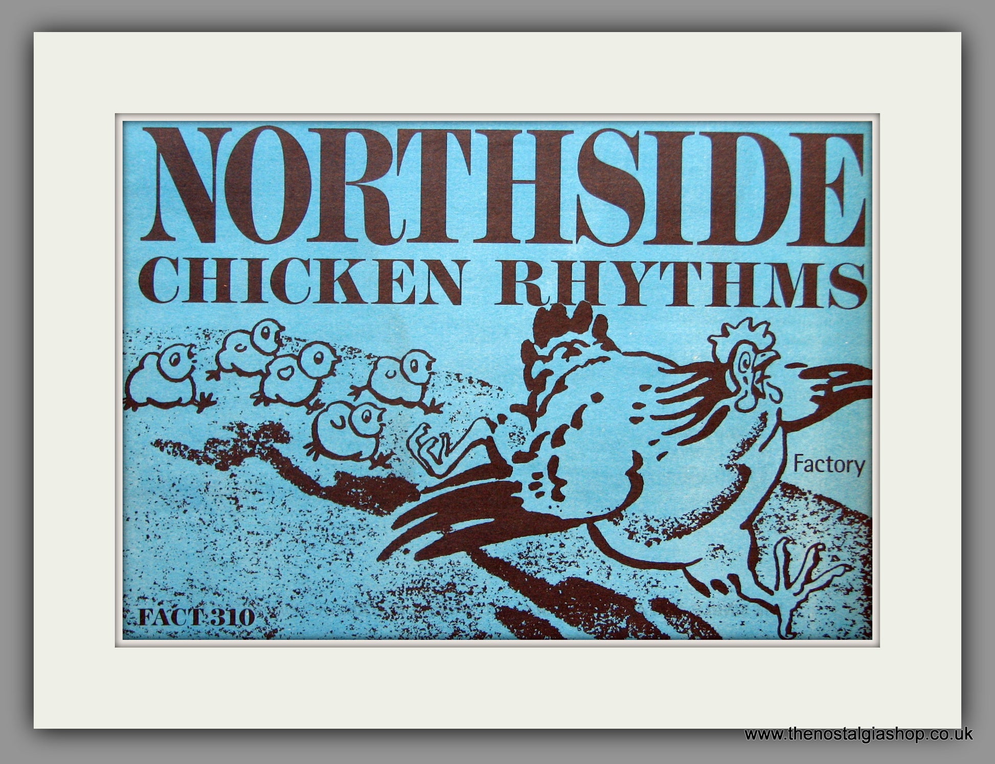 Northside, Chicken Rhythms. Classic Original advert 1991. Presented in cream bevel cut mount with backing card and clear bag. Ready to fit in 14 x 11 inch frame. Want it framing? If so, buy this then go to Frames Available Category. Click to buy on the suitable frame and we will do the rest. All our adverts, unless clearly stated are Originals from the date shown. They make excellent pieces of wall art and stunning gifts. Many are rare and hard to find and once sold, may not be replaced. Remember you are buying a piece of history. Website watermark is not on original.