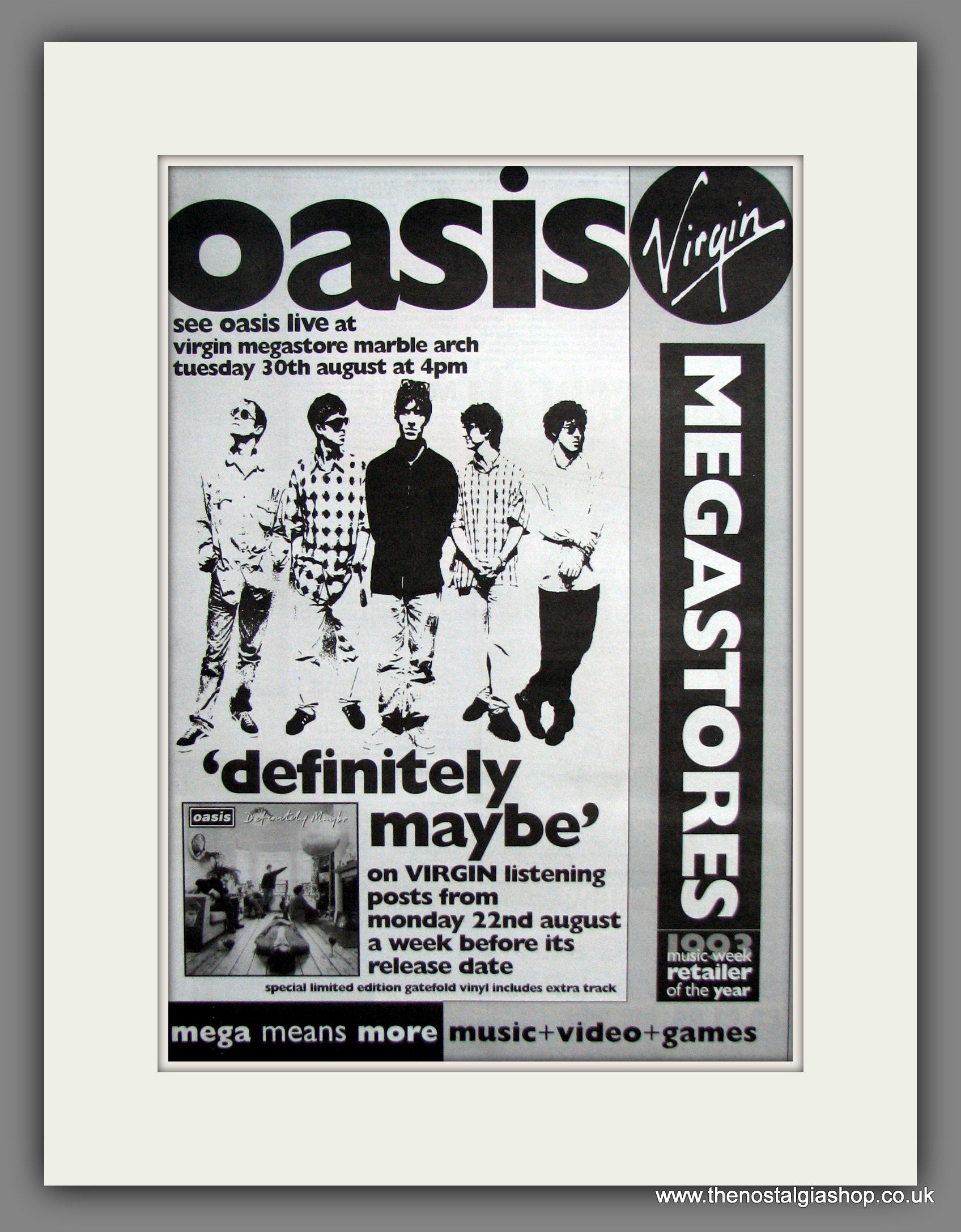 Oasis. Definitely Maybe. Original Advert 1994 (ref AD11890)
