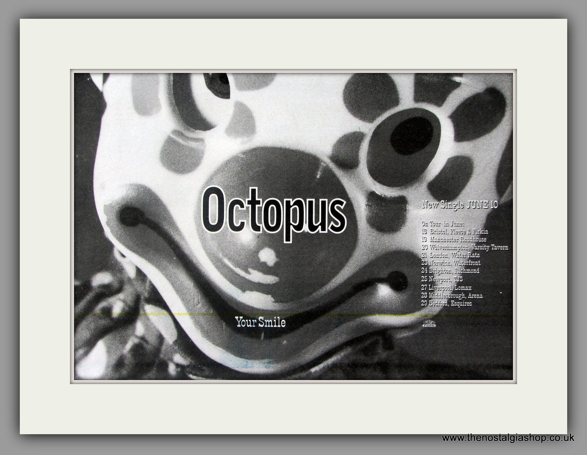 Octopus. Your Smile, Also UK Tour Dates. Vintage Advert. Classic original advert 1996. Presented in cream bevel cut mount with backing card and display bag. Ready to fit in 14 x 11 inch frame. Want it framing? If so, buy this then go to Frames Available Category. Click to buy on the suitable frame and we will do the rest. All our adverts, unless clearly stated are Originals from the date shown. They make excellent pieces of wall art and stunning gifts. Many are rare and hard to find and once sold, may not be replaced. Remember you are buying a piece of history. Website watermark is not on original.