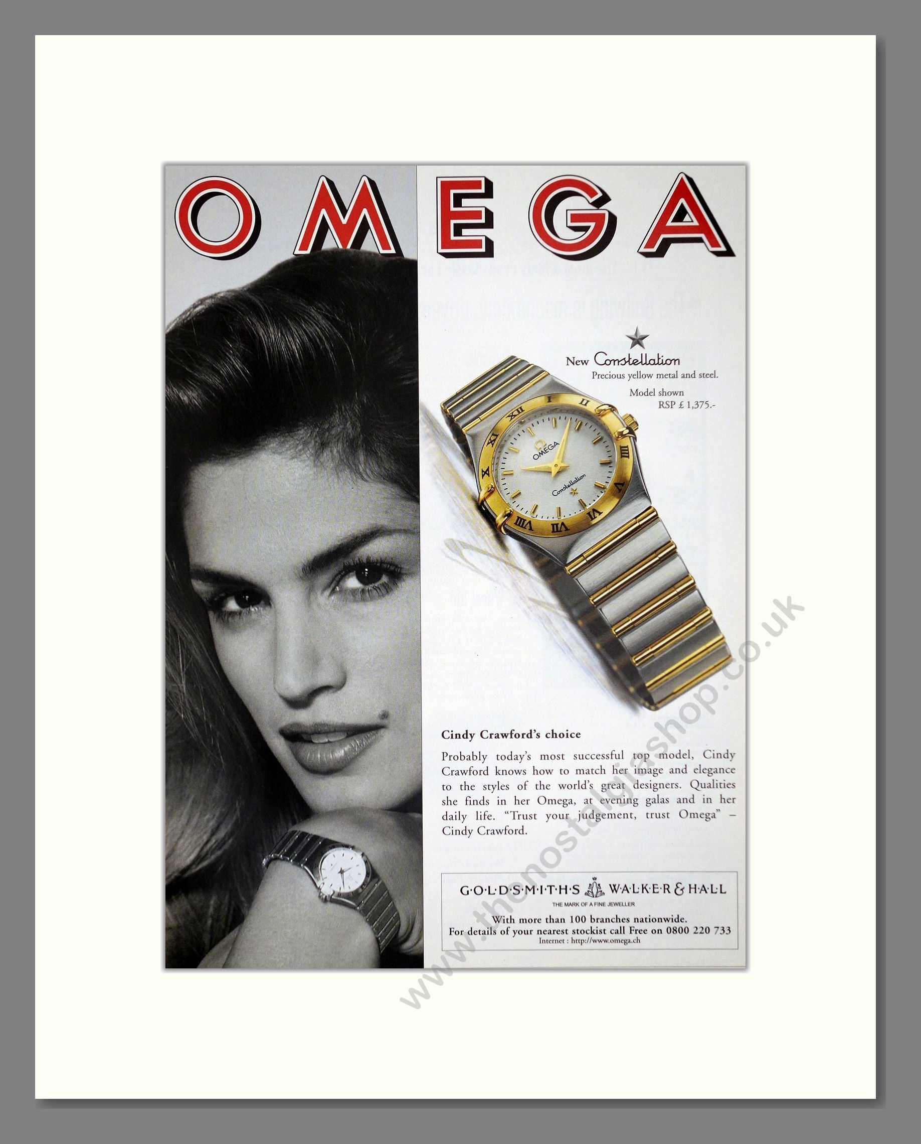 Omega - Constellation. Vintage Advert. This is a classic original advert from 1996. Presented and supplied in a cream bevel cut mount with backing card and clear bag. Ready to fit in a 14 x 11 inches frame. The mounted advert will be posted via courier and well packed - protected with a sheet of hardboard to keep it rigid. Any questions or enquiries, please get in touch, we are here to help! All our adverts, unless clearly stated are originals from the date shown. They make excellent pieces of wall art and stunning gifts. Many are rare and hard to find and once sold, may not be replaced. Remember you are buying a piece of history. Website watermark is not on original.