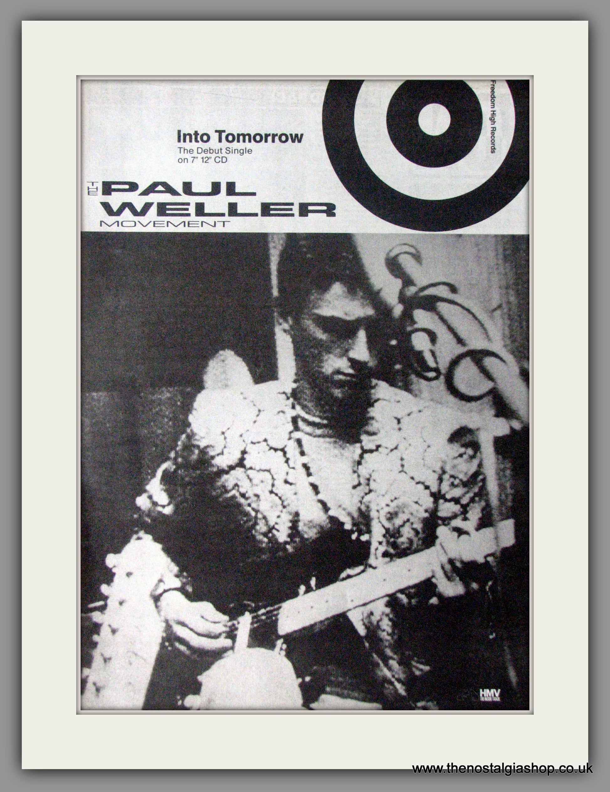 The Paul Weller Movement. Into Tomorrow, Debut Single. Vintage Advert. This is a large classic Original advert 1991. Presented in cream bevel cut mount with backing card and clear bag. Ready to fit in 20 x 16 inch frame. The mounted advert will be posted via courier and well packed - protected with a sheet of hardboard to keep it rigid. Any questions or inquiries, please get in touch, we are here to help! All our adverts, unless clearly stated are Originals from the date shown. They make excellent pieces of wall art and stunning gifts. Many are rare and hard to find and once sold, may not be replaced. Remember you are buying a piece of history. Website watermark is not on original. The Jam, Mods.