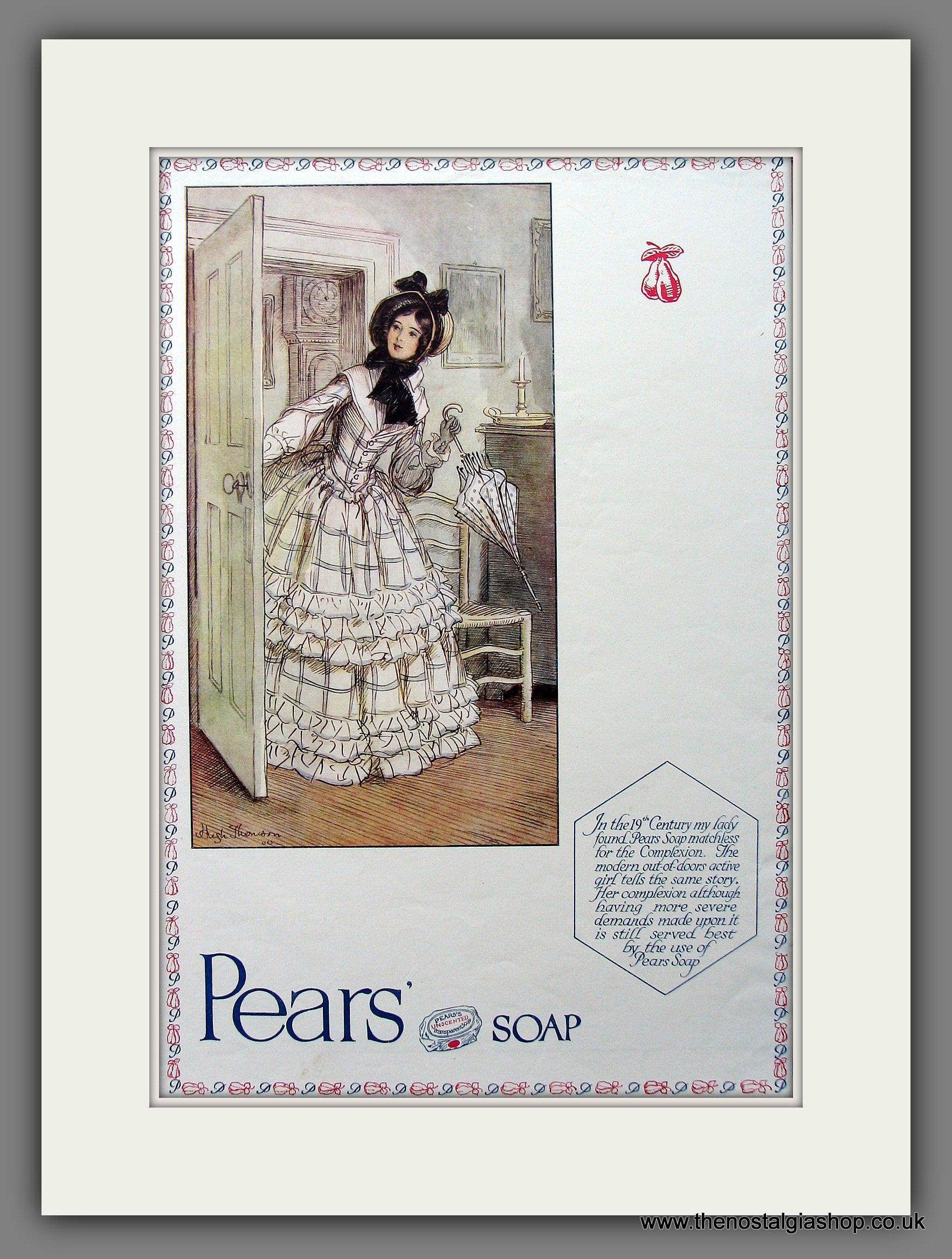 Pears' Soap. Classic Original Advert 1900. Presented and Supplied in a Cream Mount, backing board and clear bag, size 18 x 14 Inches. Item will be well packed with a sheet of hardboard to prevent damage. All our adverts, unless clearly stated are Originals from the date shown They make excellent pieces of wall art and stunning gifts. Many are rare and hard to find and once sold, may not be replaced. Remember you are buying a piece of history. Website watermark is not on original.