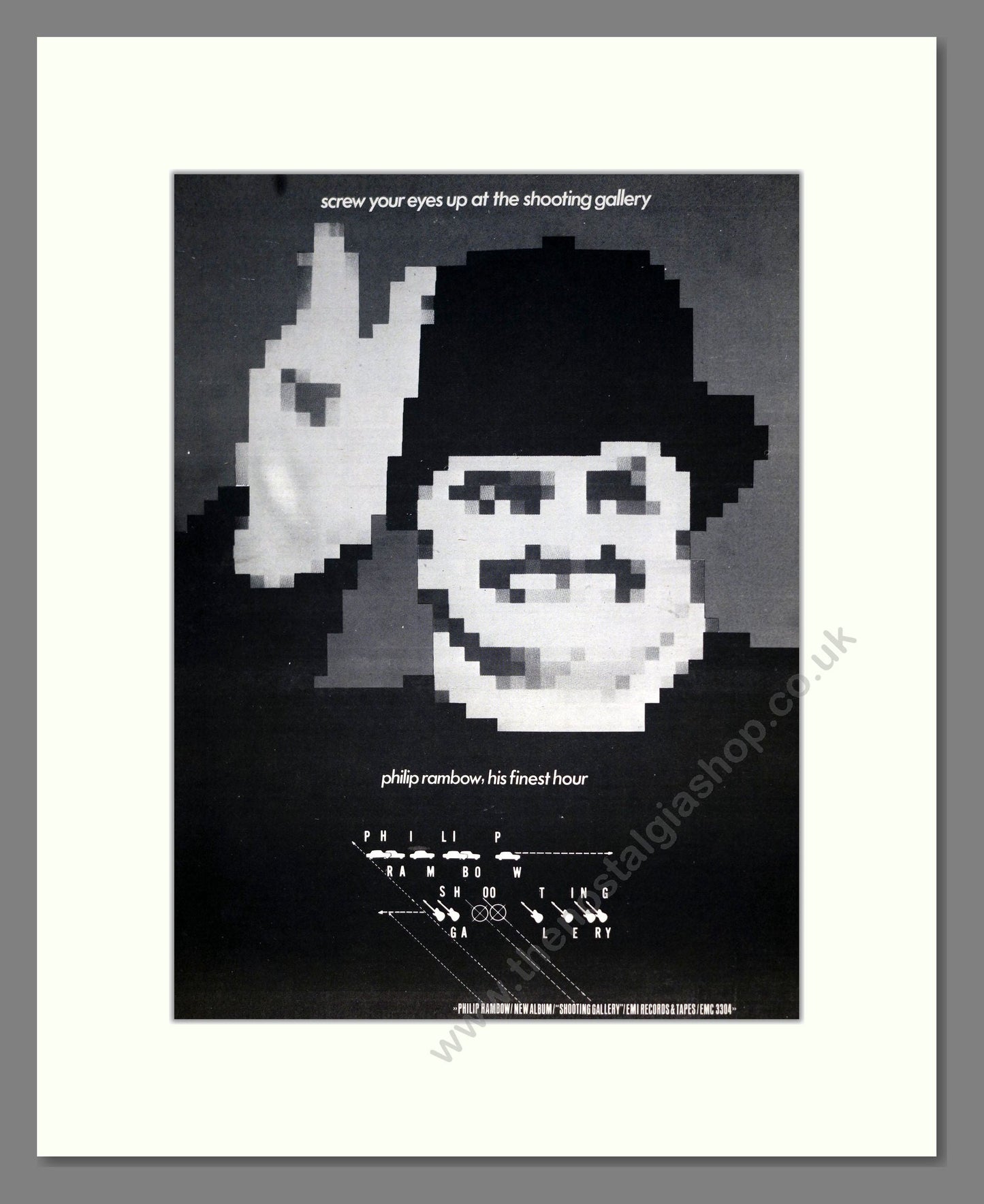 Philip Rambow - His Finest Hour. Vintage Advert. This is a large classic original advert from 1979. Presented and supplied in a cream bevel cut mount with backing card and clear bag. Ready to fit in a 20 x 16 inches frame. The mounted advert will be posted via courier and well packed - protected with a sheet of hardboard to keep it rigid. Any questions or enquiries, please get in touch, we are here to help! All our adverts, unless clearly stated are originals from the date shown. They make excellent pieces of wall art and stunning gifts. Many are rare and hard to find and once sold, may not be replaced. Remember you are buying a piece of history. Website watermark is not on original.
