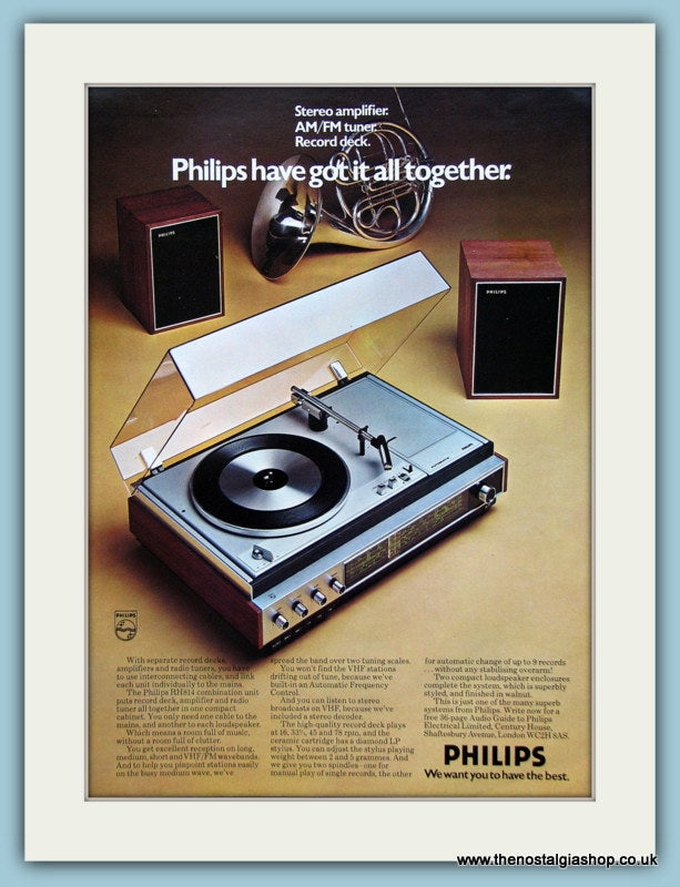 Philips. Philips have got it all together. Classic original advert 1972. Presented and Supplied in a cream bevel cut mount with backing card and clear bag. Ready to fit in 14 x 11 inch frame. Want it framing? If so, buy this then go to Frames Available Category. Click to buy on the suitable frame and we will do the rest. All our adverts, unless clearly stated are Originals from the date shown They make excellent pieces of wall art and stunning gifts. Many are rare and hard to find and once sold, may not be replaced. Remember you are buying a piece of history. Website watermark is not on original.