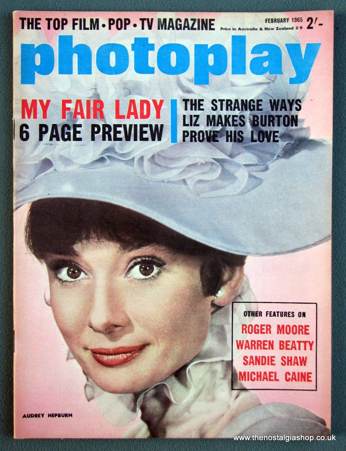 Photoplay Film Magazine. Feb 1965. Full Issue. Cover Features Audrey Hepburn, My Fair Lady. Iconic publication offering an insight into the world of Film. Condition generally very good, maybe some age related marks, nothing serious. Will be well packed.