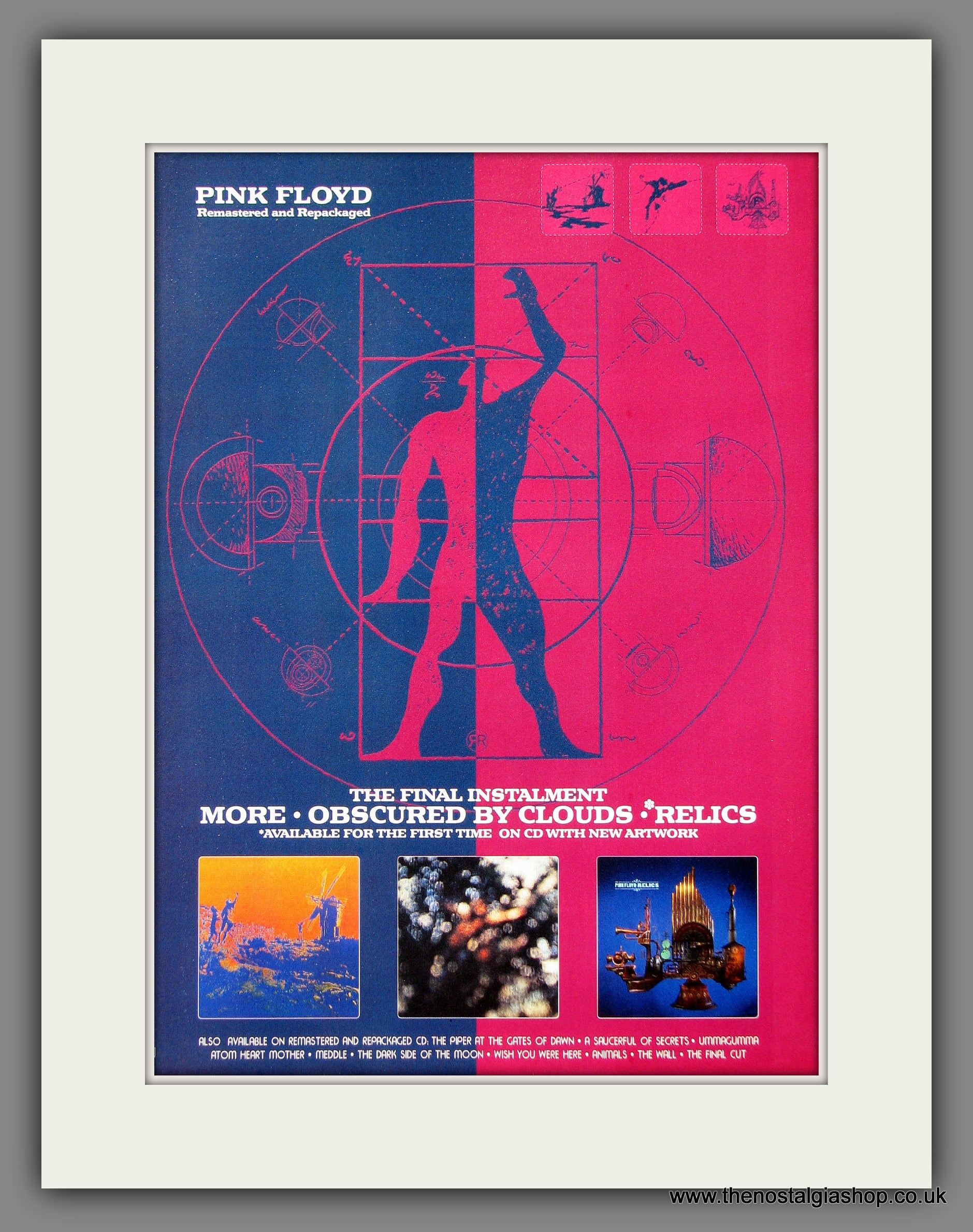 Pink Floyd. Remastered. Classic Original advert 1996. It is presented and Supplied in a cream bevel cut mount with backing card and Display bag. Ready to fit in 14 x 11 inch frame. Want it framing? If so, buy these then go to Frames Available Category. Click to buy on the suitable frame and we will do the rest. All our adverts, unless clearly stated are Originals from the date shown. They make excellent pieces of wall art and stunning gifts. Many are rare and hard to find and once sold, may not be replaced. Remember you are buying a piece of history. Website watermark is not on original. David Gilmour, Roger Waters, Nick Mason, Richard Wright, Syd Barrett.