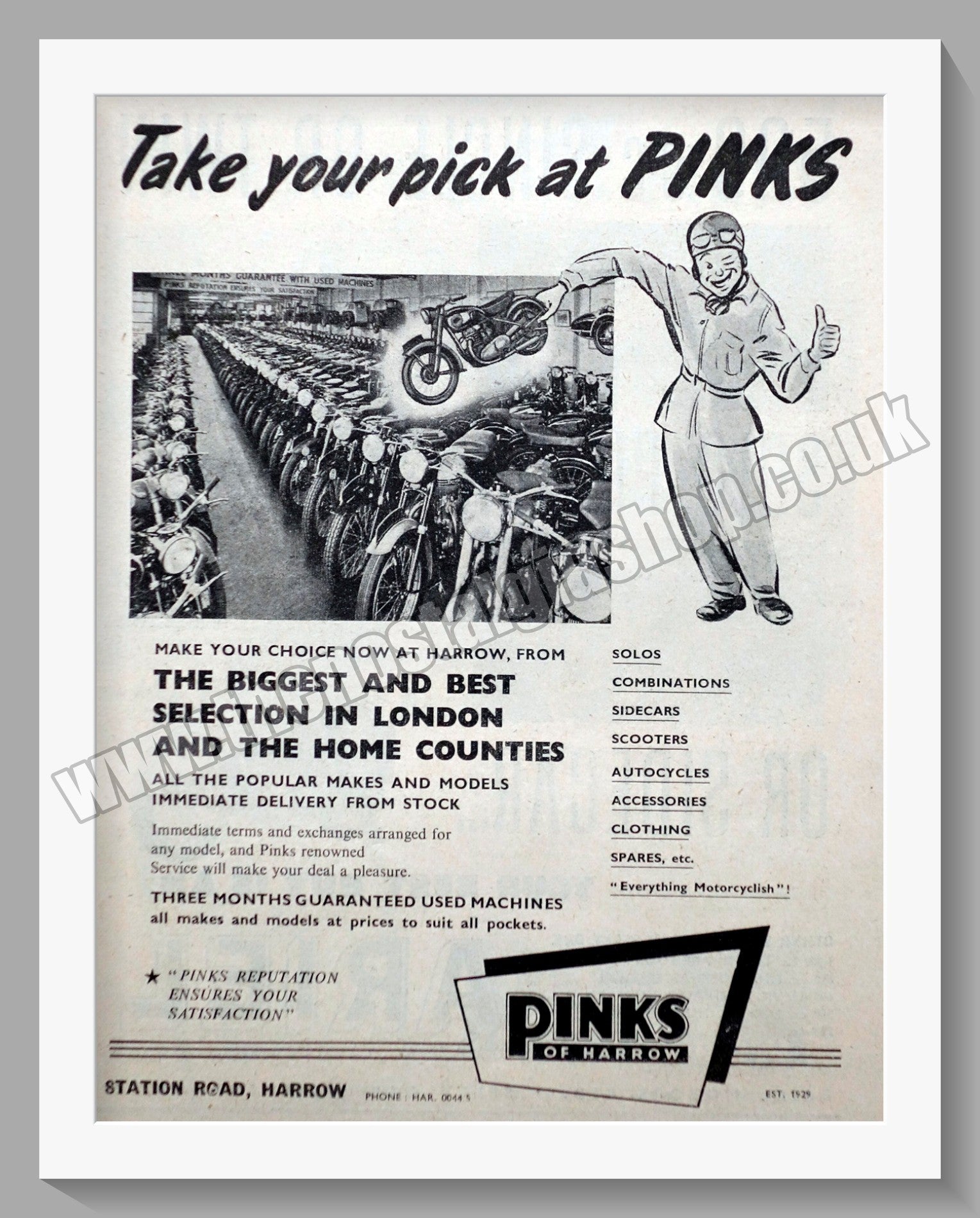 Pinks Of Harrow Motorcycle Dealerships. Original Advert 1955 (ref AD57291)