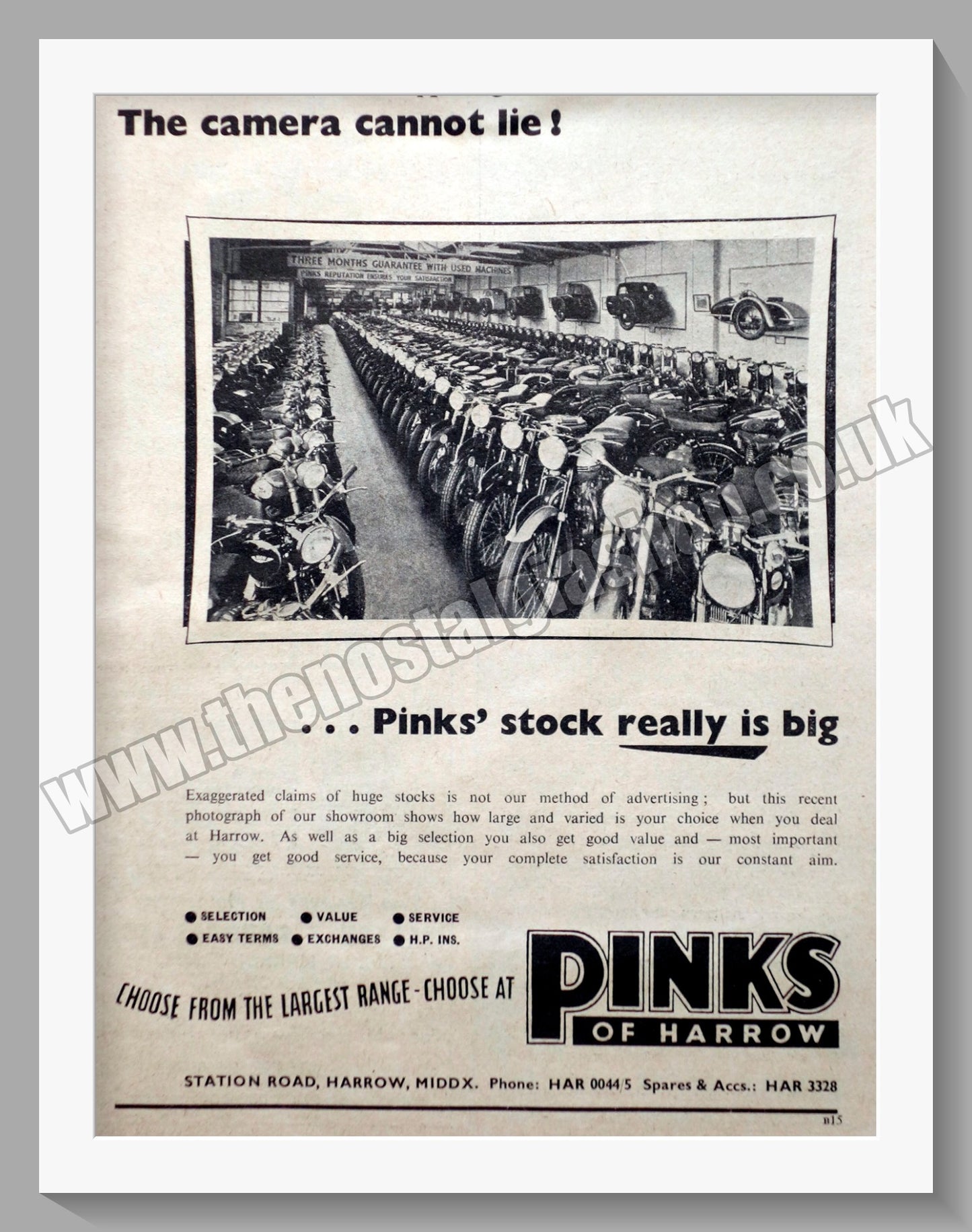 Pinks Of Harrow Motorcycle Dealerships. Original Advert 1954 (ref AD57310)