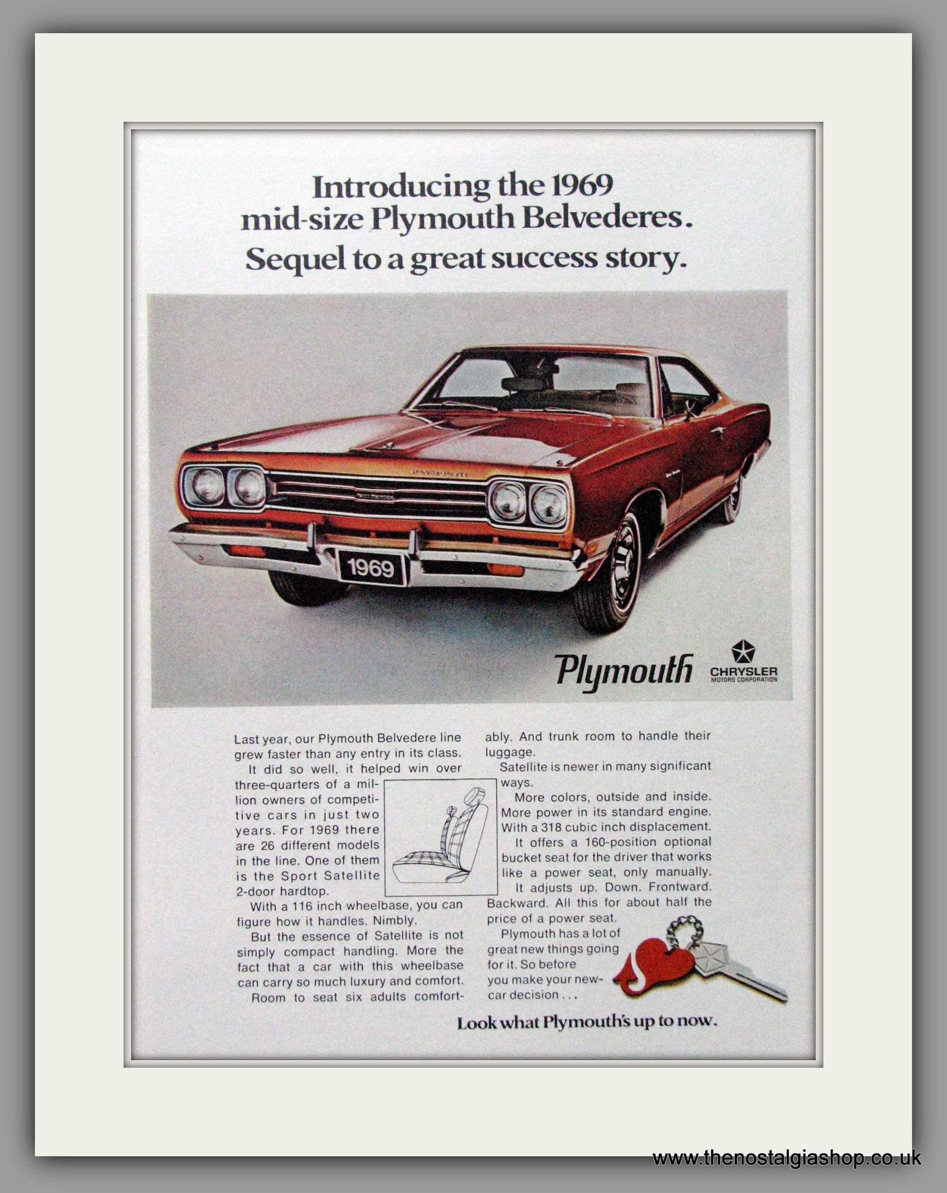 Plymouth Belvedere for '69. Vintage Advert. Classic Original American advert 1968. Presented and Supplied in cream bevel cut mount, size 14 x 11 inches with backing card and clear bag. Ready to frame. Want it framing? If so, buy this then go to Frames Available Category. Click to buy on the suitable frame and we will do the rest. All our adverts, unless clearly stated are Originals from the date shown They make excellent pieces of wall art and stunning gifts. Many are rare and hard to find and once sold, may not be replaced. Remember you are buying a piece of history. Website watermark is not on original.