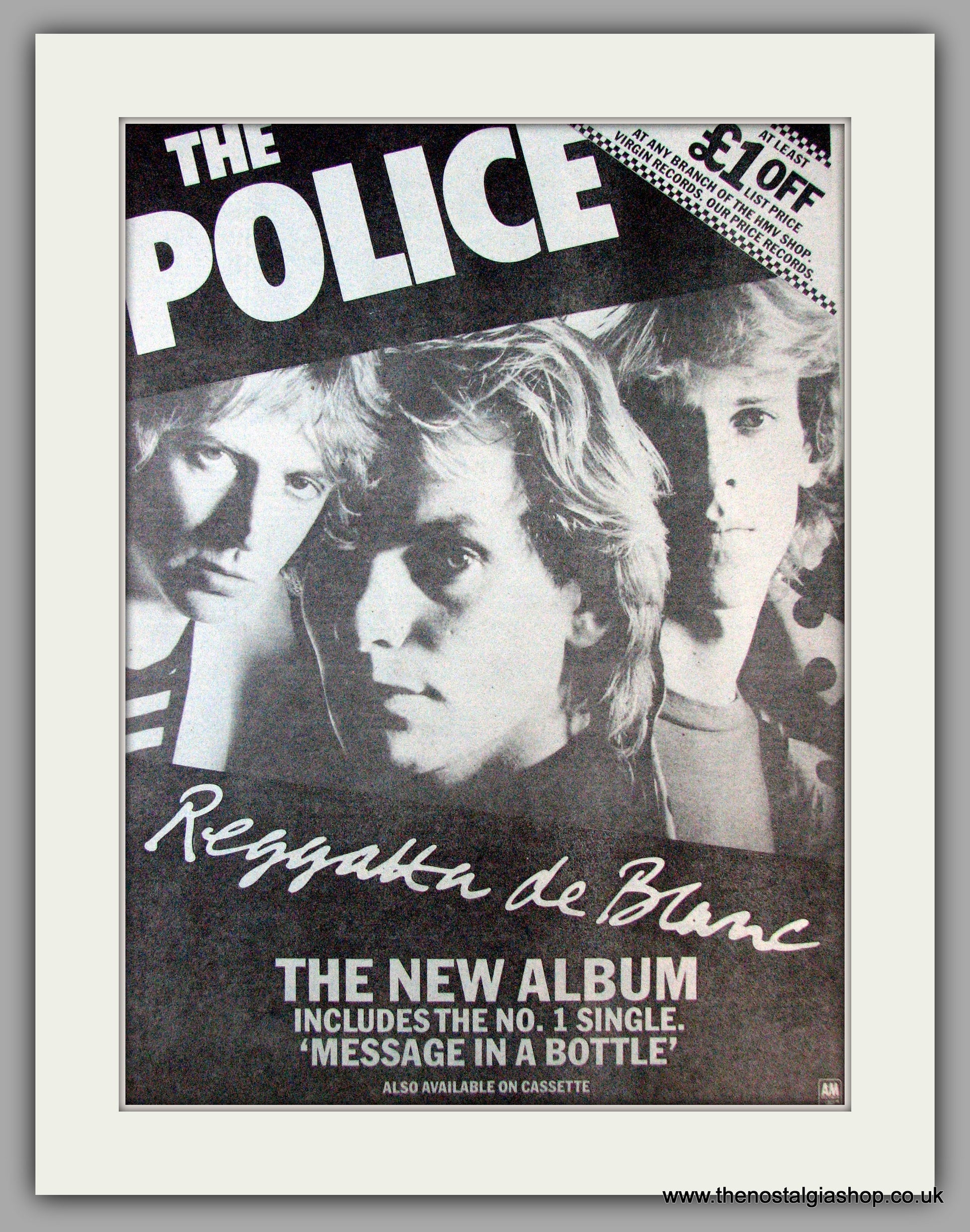 The Police. Reggatta De Blanc. Sting. Stuart Copeland. Vintage Advert. This is a large classic Original advert 1979. Presented in cream bevel cut mount with backing card and clear bag. Ready to fit in 20 x 16 inch frame. The mounted advert will be posted via courier and well packed - protected with a sheet of hardboard to keep it rigid. Any questions or inquiries, please get in touch, we are here to help! All our adverts, unless clearly stated are Originals from the date shown. They make excellent pieces of wall art and stunning gifts. Many are rare and hard to find and once sold, may not be replaced. Remember you are buying a piece of history. Website watermark is not on original .