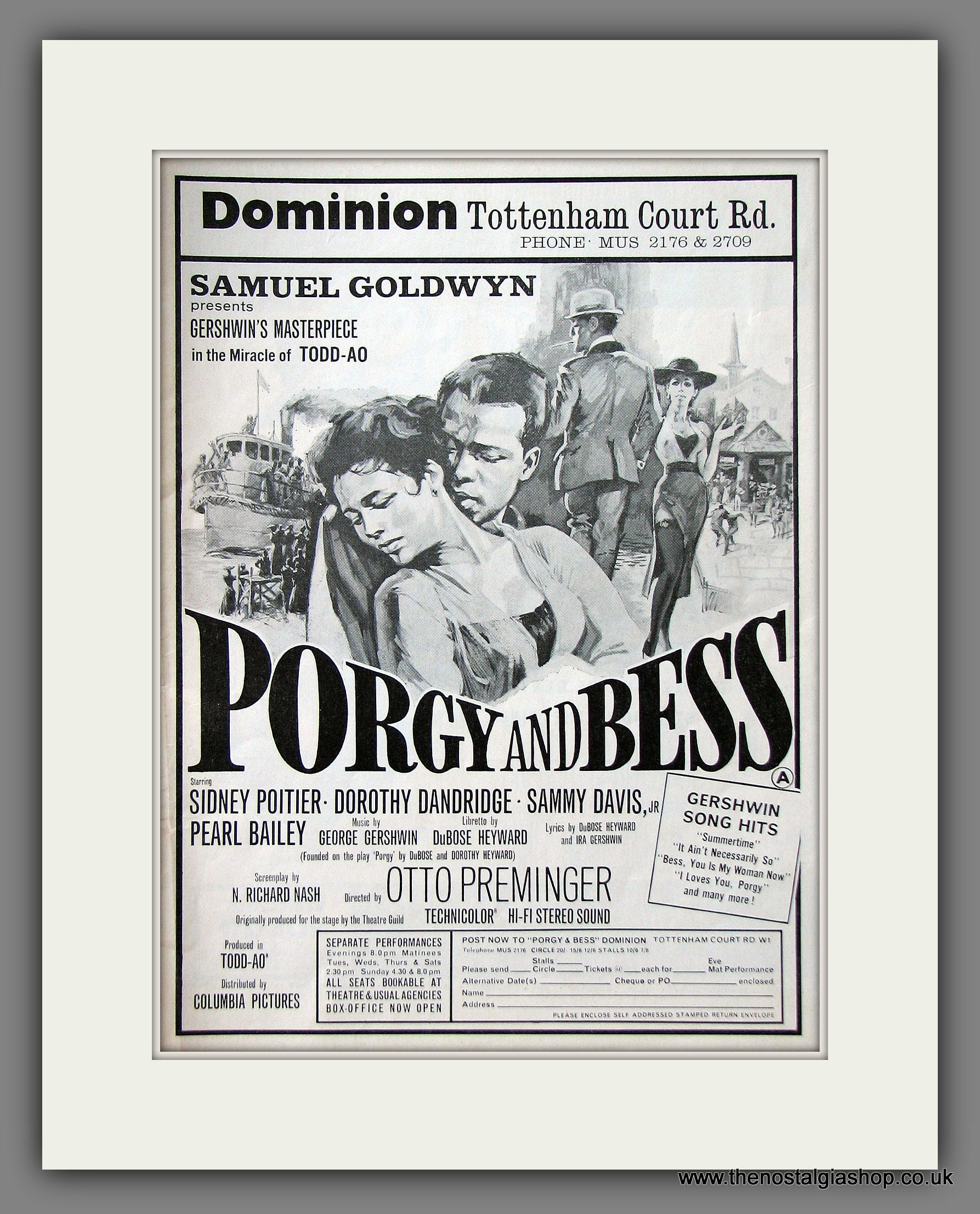 Porgy And Bess. Sidney Poitier. Classic Original advert 1963. Presented and Supplied in a cream bevel cut mount with backing card and clear bag. Ready to fit in 14 x 11 inch frame. Want it framing? If so, buy this then go to Frames Available Category. Click to buy on the suitable frame and we will do the rest. All our adverts, unless clearly stated are Originals from the date shown. They make excellent pieces of wall art and stunning gifts. Many are rare and hard to find and once sold, may not be replaced. Remember you are buying a piece of history. Website watermark is not on original.