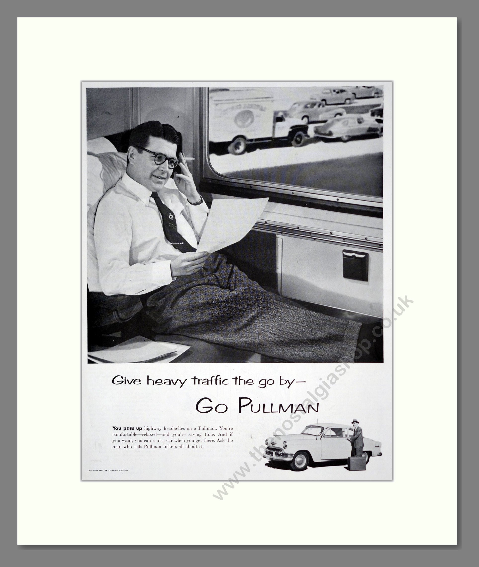 Pullman - Give Heavy Traffic The Go By. Vintage Advert. This is a large classic original advert from 1953. Presented and supplied in a cream bevel cut mount with backing card and clear bag. Ready to fit in a 18 x 14 inches frame. The mounted advert will be posted via courier and well packed - protected with a sheet of hardboard to keep it rigid. Any questions or enquiries, please get in touch, we are here to help! All our adverts, unless clearly stated are originals from the date shown. They make excellent pieces of wall art and stunning gifts. Many are rare and hard to find and once sold, may not be replaced. Remember you are buying a piece of history. Website watermark is not on original.