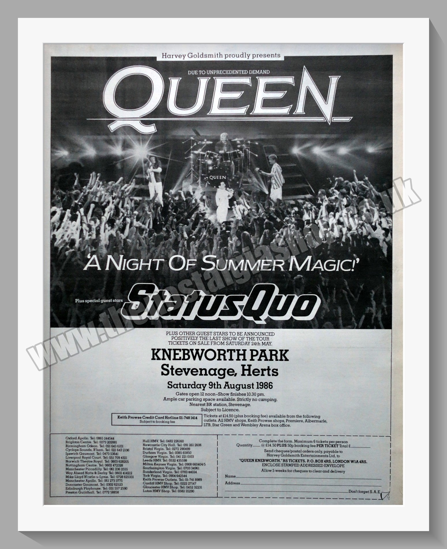 Queen & Status Quo Knebworth Park. 1986 Large Original Advert (ref AD15223)