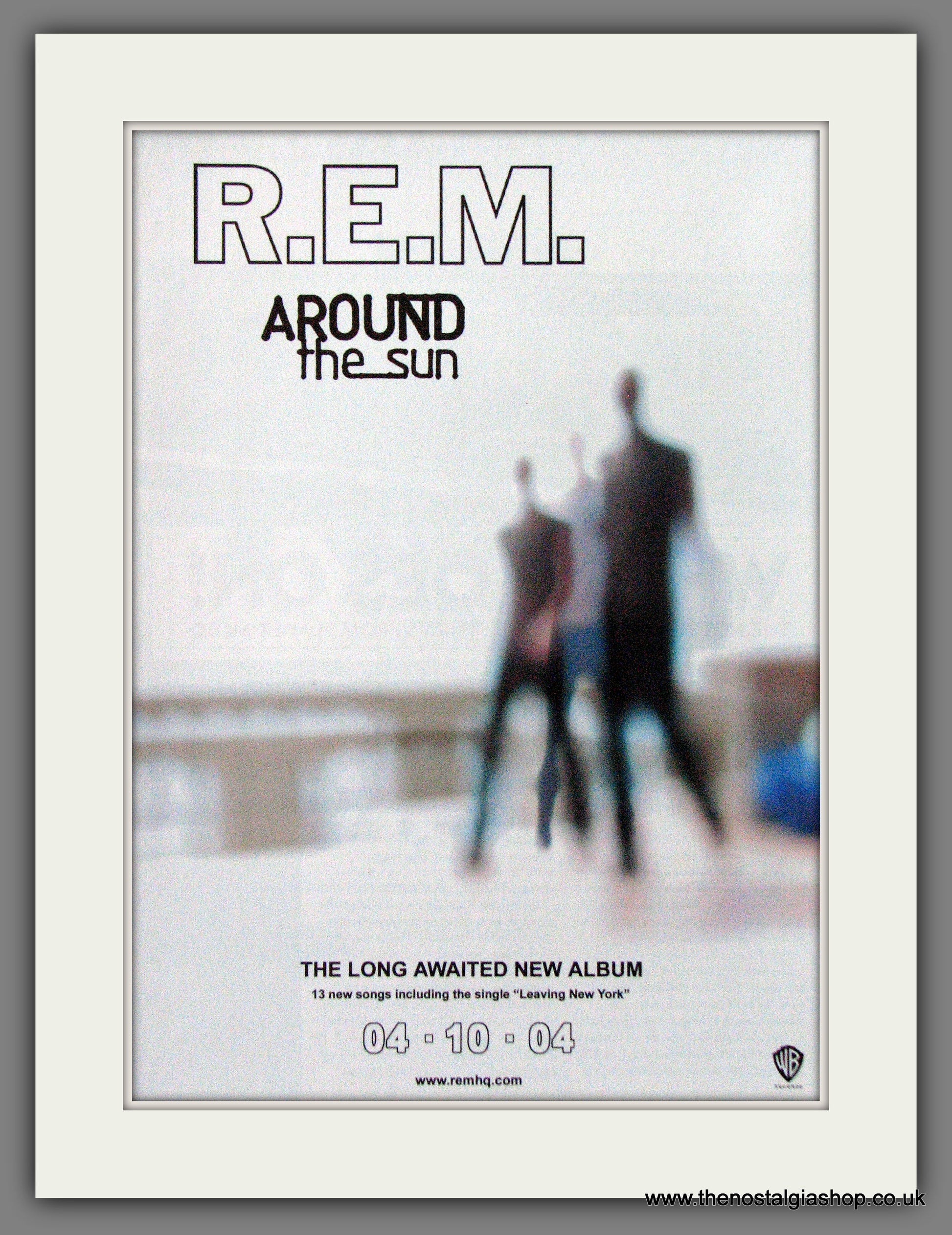 REM, Around The Sun. Classic Original advert 2004. Presented and Supplied in a cream bevel cut mount with backing card and clear bag. Ready to fit in 14 x 11 inch frame. Want it framing? If so, buy this then go to Frames Available Category. Click to buy on the suitable frame and we will do the rest. All our adverts, unless clearly stated are Originals from the date shown. They make excellent pieces of wall art and stunning gifts. Many are rare and hard to find and once sold, may not be replaced. Remember you are buying a piece of history. Website watermark is not on original.