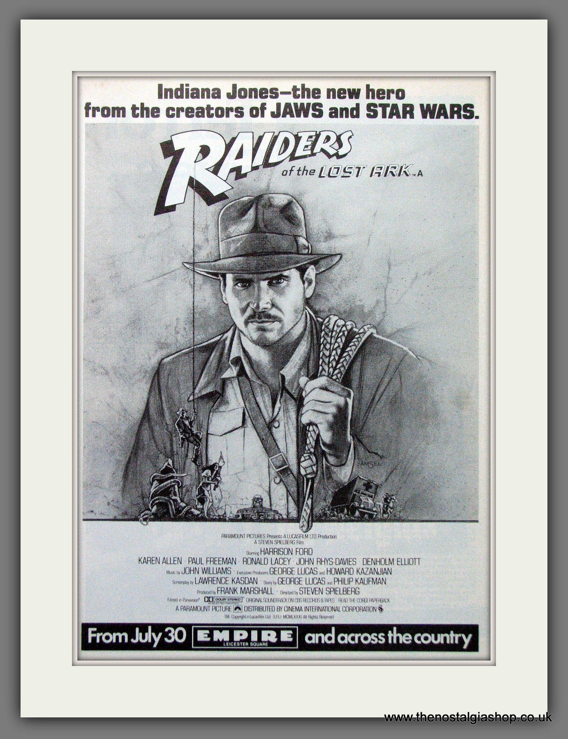 Raiders Of The Lost Ark. Harrison Ford. Vintage Advert 1981 (ref AD56315)