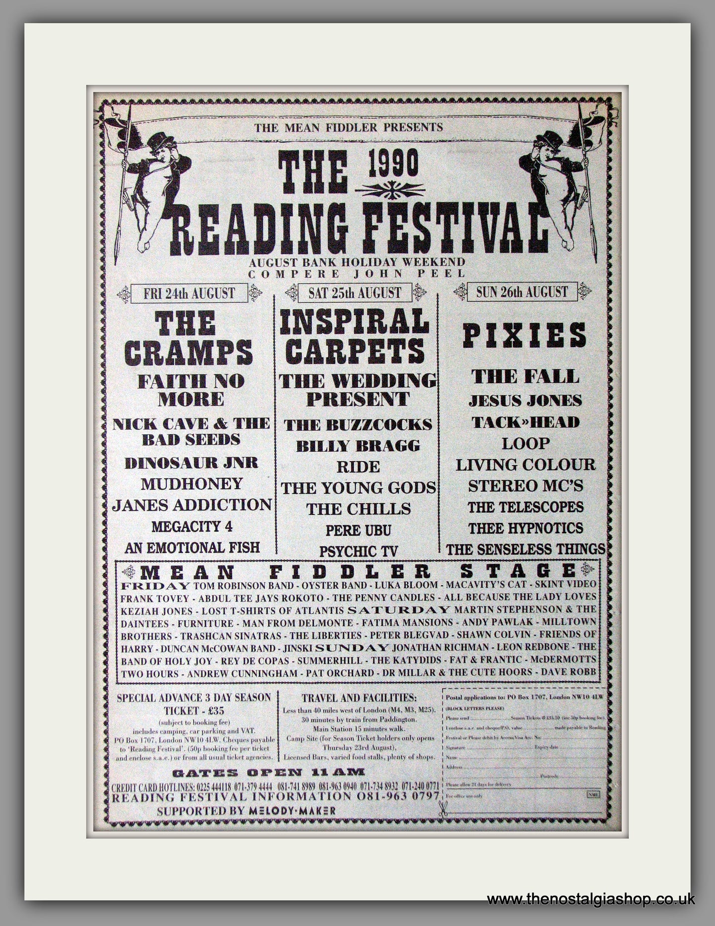 Reading Festival '90 Rock Festival. Vintage Advert 1990 (ref AD11401)