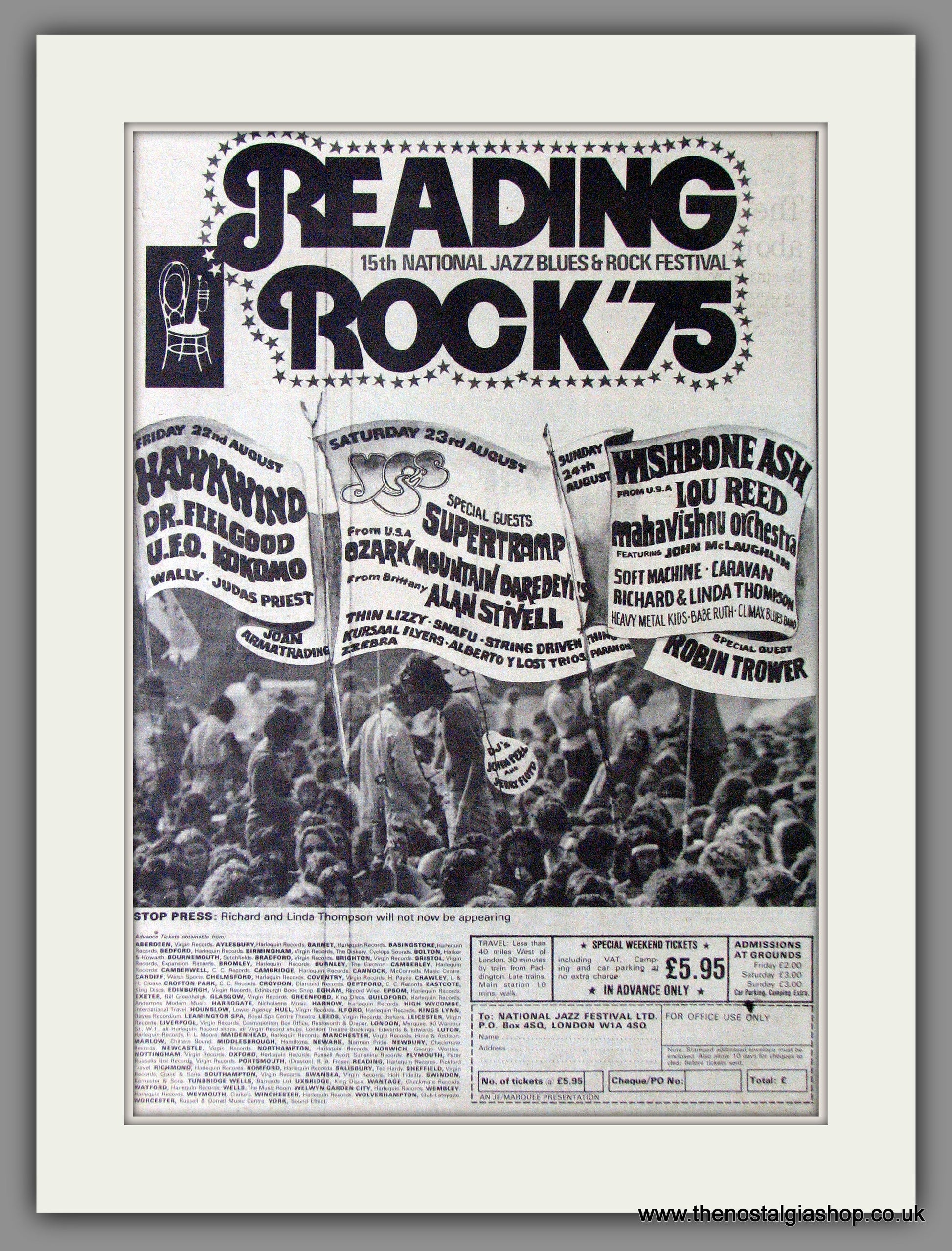 Reading Rock '75 Rock Festival. Vintage Advert 1975 (ref AD11395)