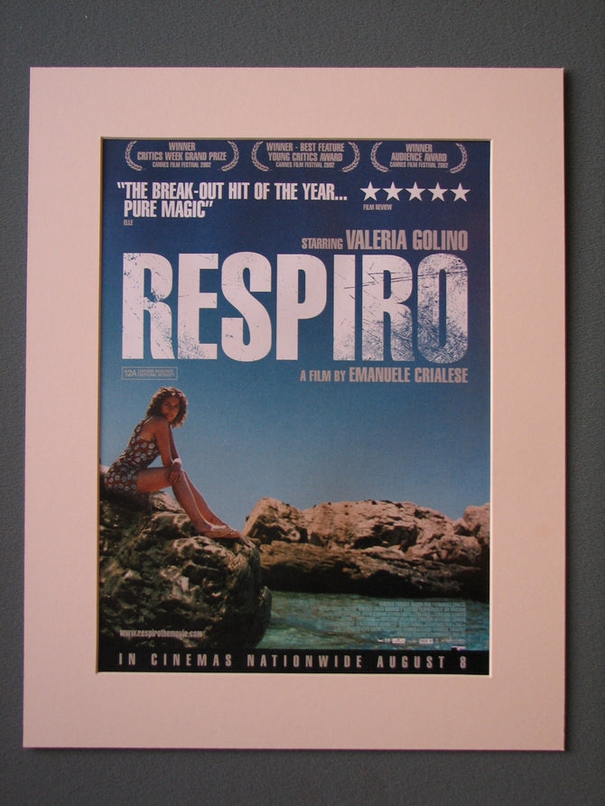 Respiro. Valeria Golino. Original advert 2003 Presented in cream bevel cut mount with backing card. Ready to fit in 14 x 11 inch frame. Want it framing? buy this then go to Frames Available Category. Click to buy on the suitable frame and we will do the rest. All our adverts, unless clearly stated are Originals from the date shown They make excellent pieces of wall art and stunning gifts. Many are rare and hard to find and once sold, may not be replaced. Remember you are buying a piece of history.