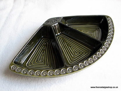 3 Compartment Olive Green Serving Dish.1970'sCondition; Excellent, see photos.Item will be very well packed.