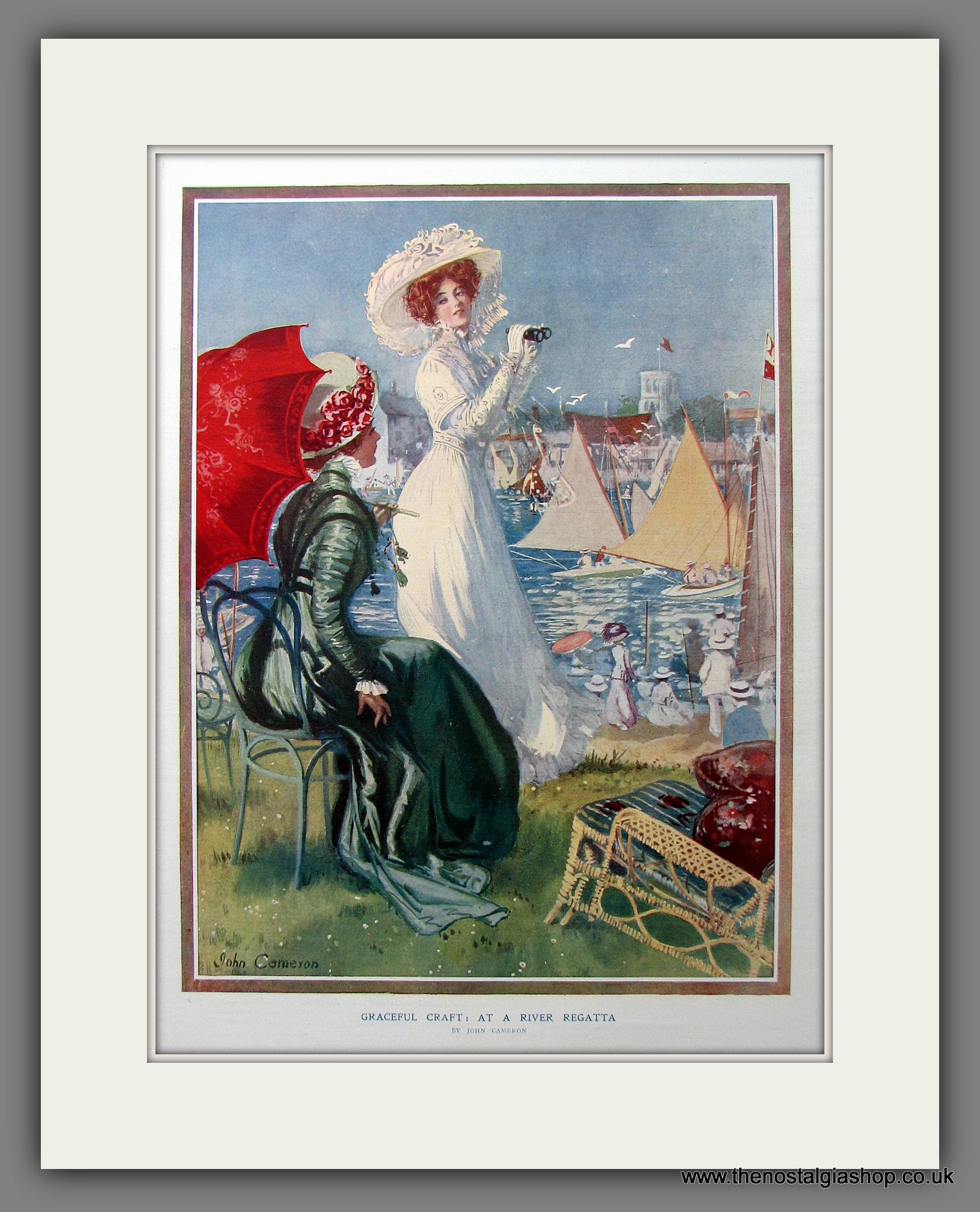 River Regatta Ladies Fashion Original Print 1909 (ref AD13443)