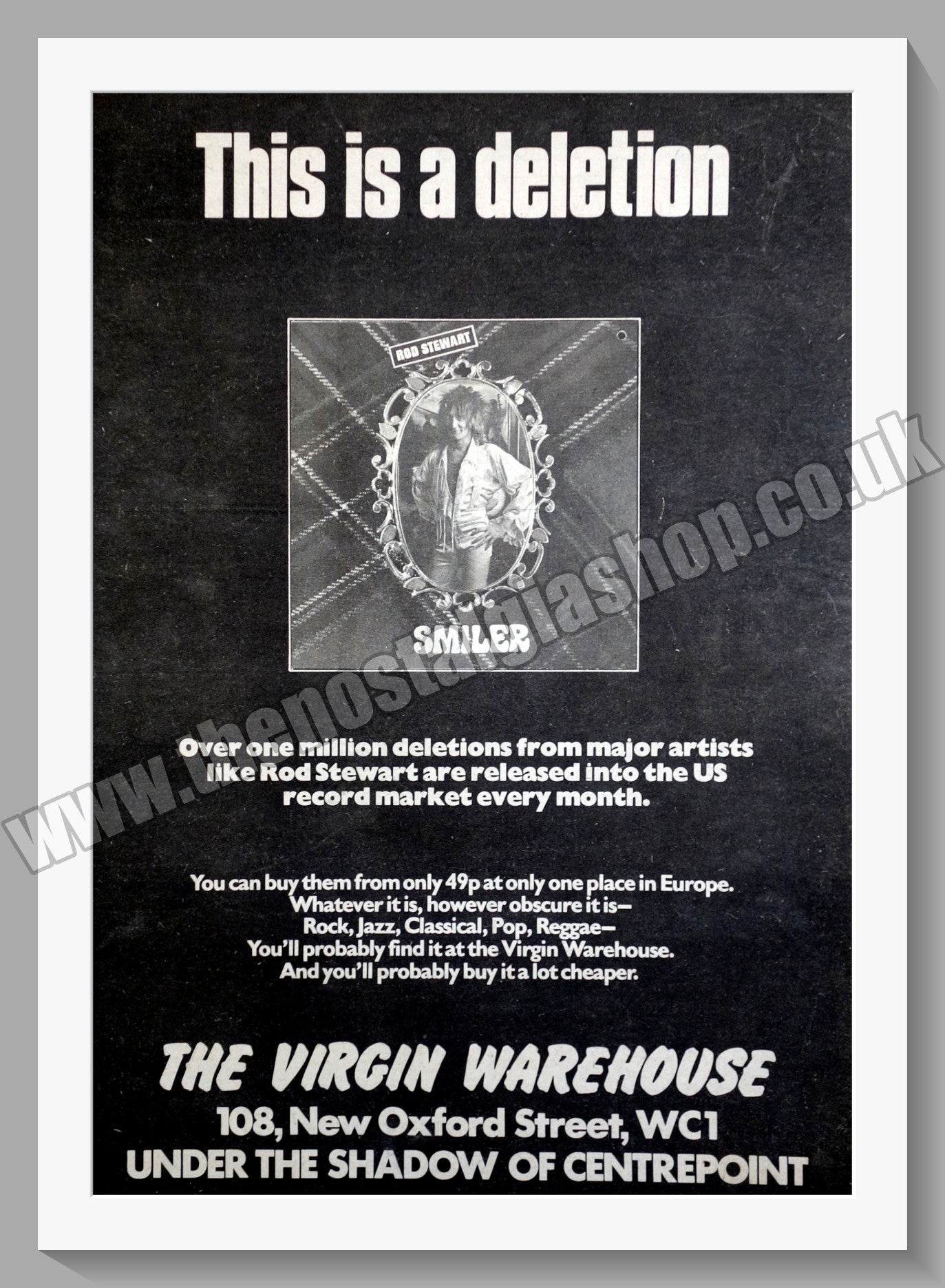 Rod Stewart Smiler. This Is A Large Classic Original advert 1976. Presented in cream bevel cut mount with backing card and clear bag. Ready to fit in 20 x 16 inch frame. Any questions or enquiries, please get in touch, we are here to help! All our adverts, unless clearly stated are Originals from the date shown. They make excellent pieces of wall art and stunning gifts. Many are rare and hard to find and once sold, may not be replaced. Remember you are buying a piece of history. Website watermark is not on original