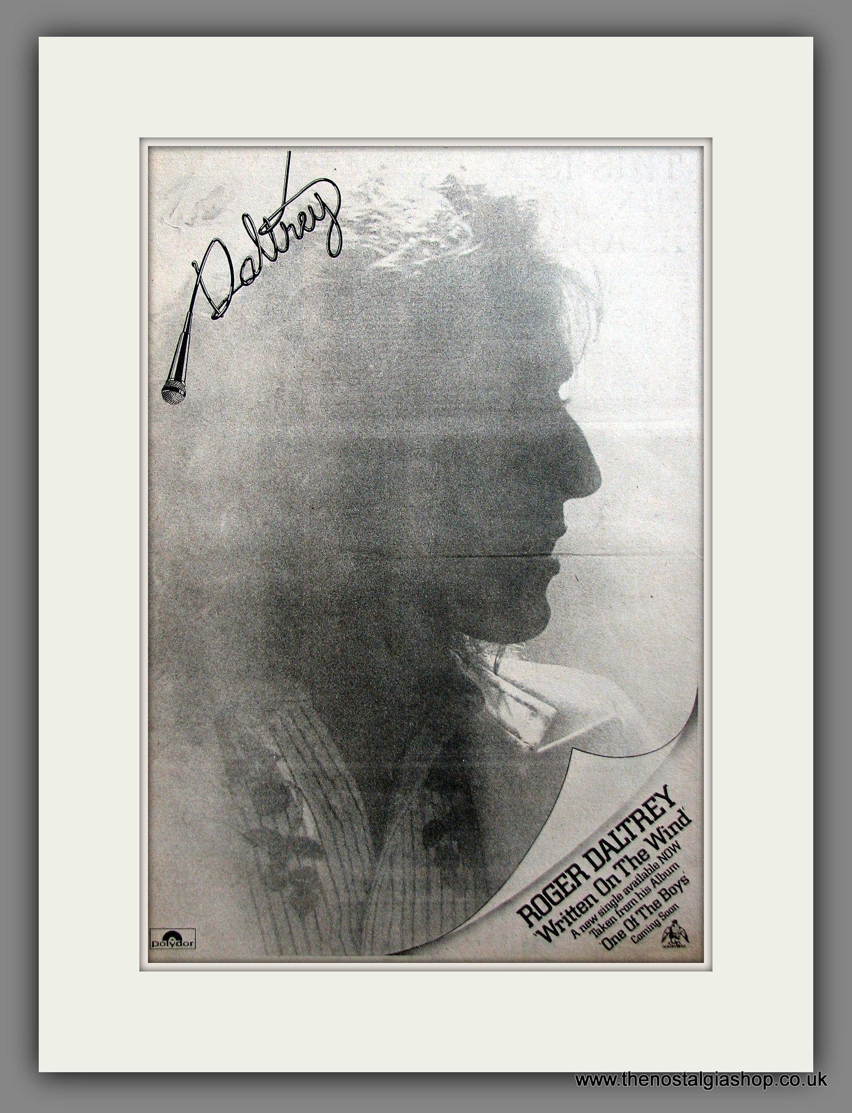 Roger Daltrey. Written On The Wind. The Who. Vintage Advert. This is a large classic Original advert 1977. Presented and Supplied in a cream bevel cut mount with backing card and clear bag. Ready to fit in 20 x 16 inch frame. The mounted advert will be posted via courier and well packed - protected with a sheet of hardboard to keep it rigid. Any questions or inquiries, please get in touch, we are here to help! All our adverts, unless clearly stated are Originals from the date shown. They make excellent pieces of wall art and stunning gifts. Many are rare and hard to find and once sold, may not be replaced. Remember you are buying a piece of history. Website watermark is not on original .