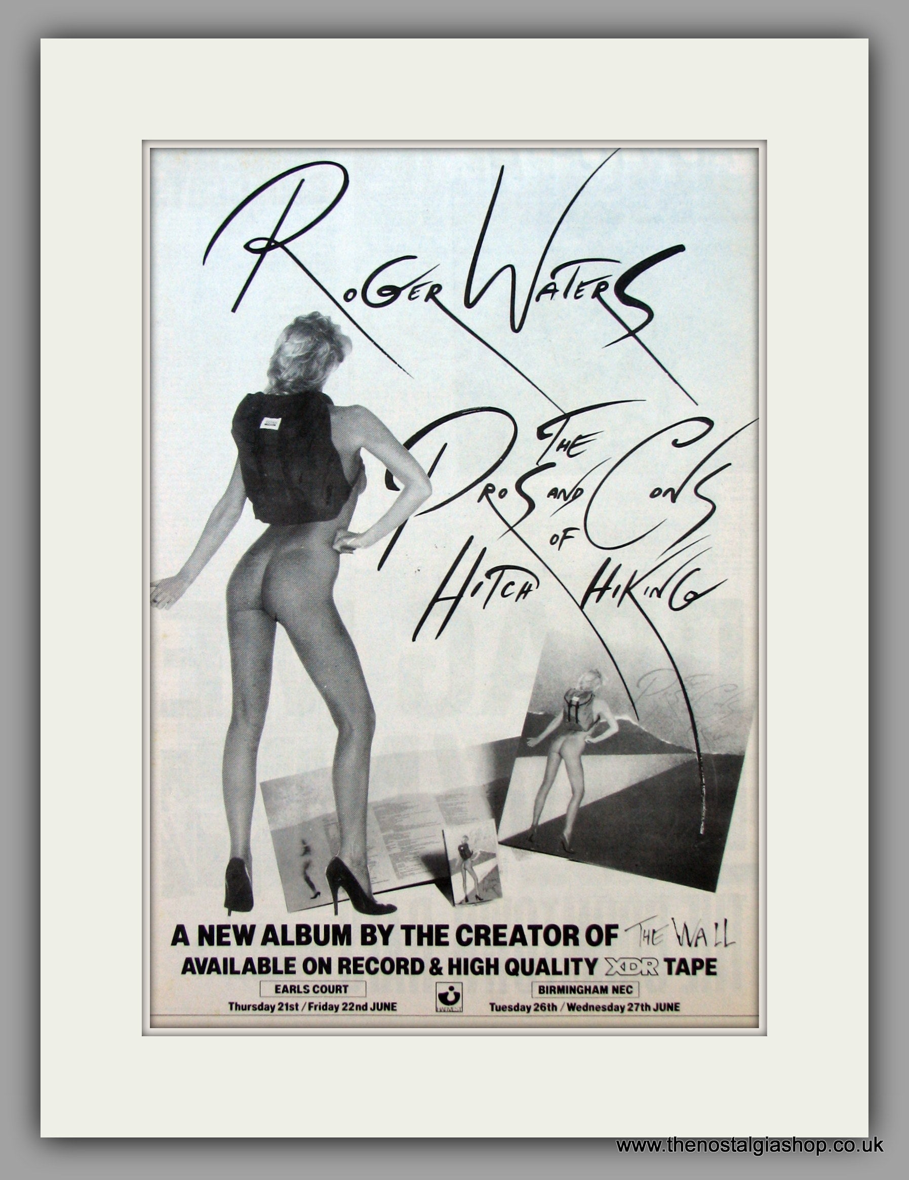 Roger Waters. Hitch Hiking. Original Vintage Advert 1984 (ref AD10387). Presented and supplied in a cream bevel cut mount with backing card and clear bag. Ready to fit in a 20x16 inch frame. The mounted advert will be posted via courier and well packed - protected with a sheet of hardboard to keep it rigid. Any questions or enquiries, please get in touch, we are here to help! All our adverts, unless clearly stated are originals from the date shown. They make excellent pieces of wall art and stunning gifts. Many are rare and hard to find and once sold, may not be replaced. Remember you are buying a piece of history. Website watermark is not on original.