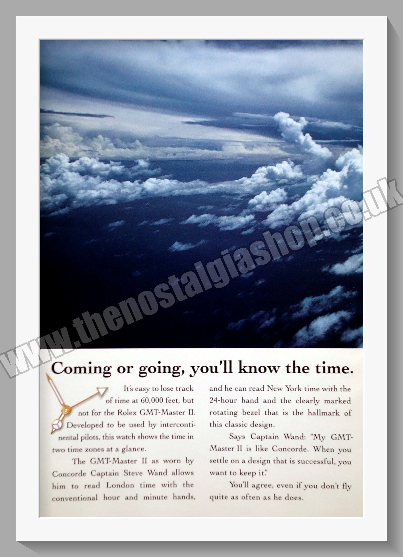 Rolex Watches, GMT Master II. Classic Original Double Vintage Advert 1996. Presented and supplied in 2 cream bevel cut mounts with backing card and clear bag. Ready to fit in 2 Certificate Size frames. All our adverts, unless clearly stated are Originals from the date shown. They make excellent pieces of wall art and stunning gifts. Many are rare and hard to find and once sold, may not be replaced. Remember you are buying a piece of history. Website watermark is not on original.
