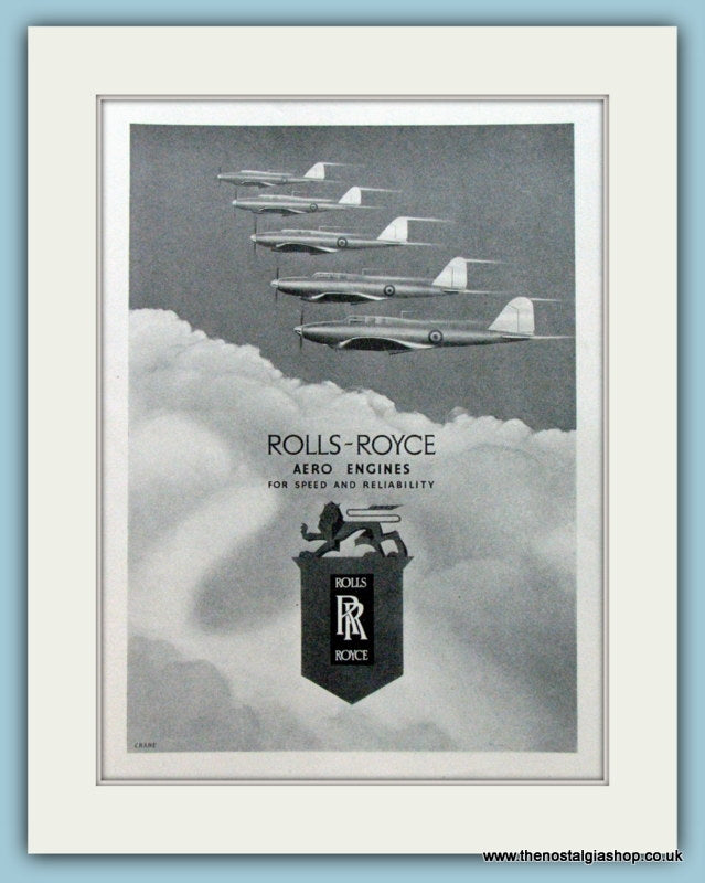 Rolls Royce. Aero Engines for speed and reliability. Classic original advert 1938. Presented in cream bevel cut mount with backing card and clear bag. Ready to fit in 14 x 11 inch frame. Want it framing? If so, buy this then go to Frames Available Category. Click to buy on the suitable frame and we will do the rest. All our adverts, unless clearly stated are Originals from the date shown. They make excellent pieces of wall art and stunning gifts. Many are rare and hard to find and once sold, may not be replaced. Remember you are buying a piece of history. Website watermark is not on original.